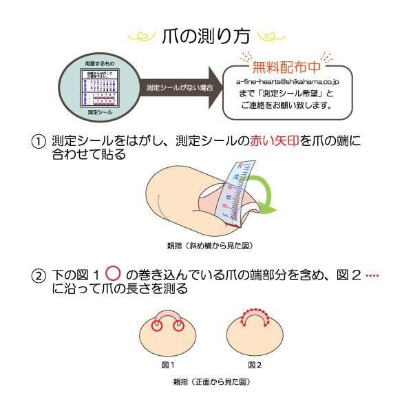 ※初回ご購入をご検討の際やサイズ選定時には巻いている部分を含めた爪の端から端までの曲線の長さをお測りください。 爪に貼って測れる「測定シール」を無料にて配布しておりますので、 [email protected]まで「測定シール希望」とご連絡をお願い致します。特許取得済 第三種医療機器認可取得済 届出番号13B3X10157000015