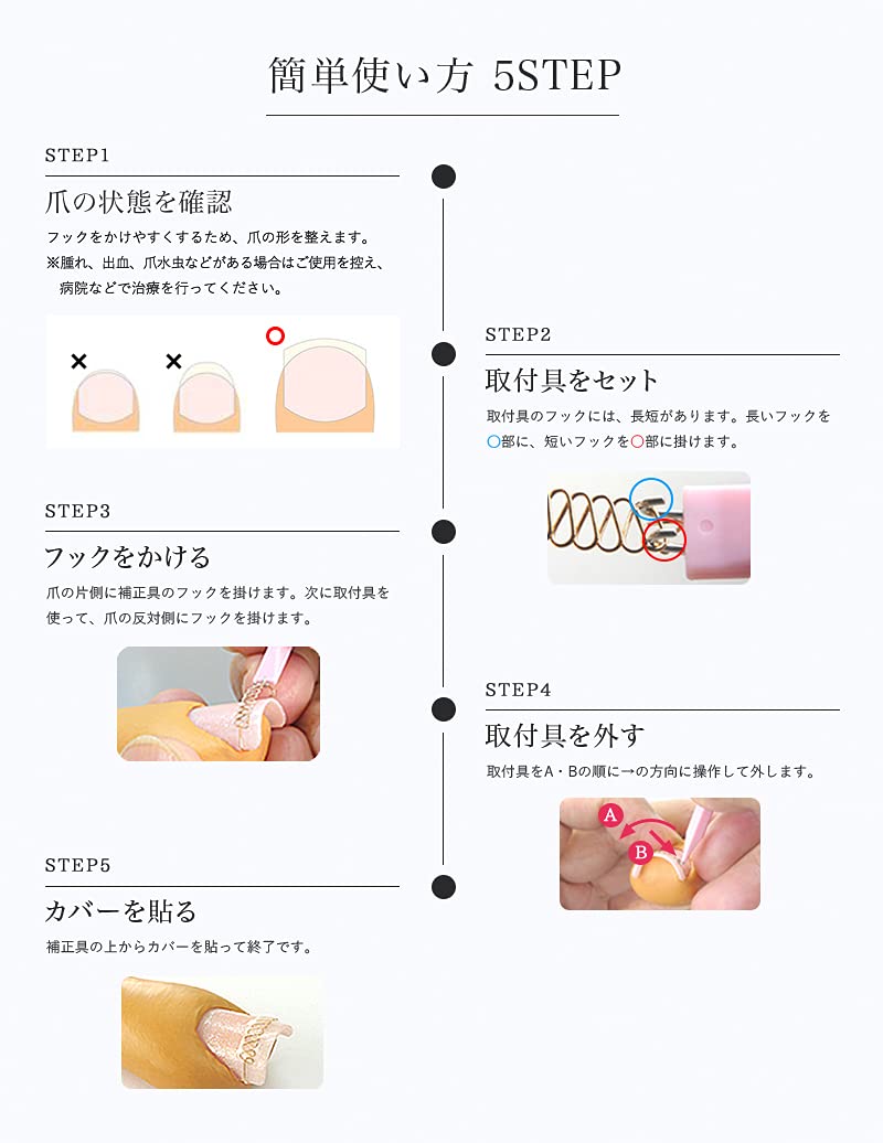 ※初回ご購入をご検討の際やサイズ選定時には巻いている部分を含めた爪の端から端までの曲線の長さをお測りください。 爪に貼って測れる「測定シール」を無料にて配布しておりますので、 [email protected]まで「測定シール希望」とご連絡をお願い致します。特許取得済 第三種医療機器認可取得済 届出番号13B3X10157000015