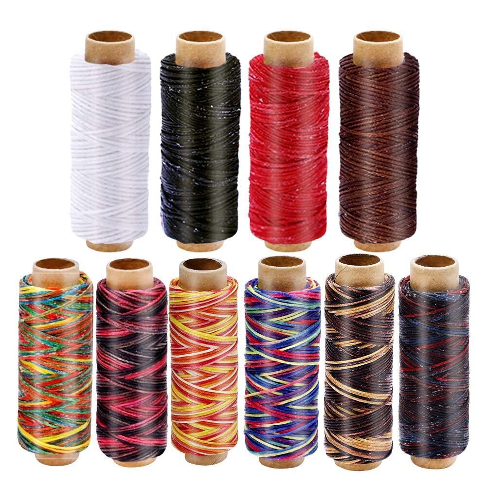 RMTIME 蝋引き糸 ロウ引き糸 ワックスコード 手縫い 手芸 紐 DIY レザークラフト糸 直径1mm 10個セット 各50m