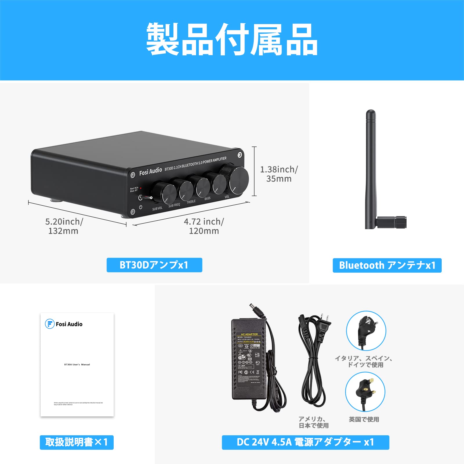 【24ヶ月間の】FosiAudioBT30Dアンプ、24V/4.5A電源、ユーザーズマニュアル、24ヶ月間のが含まれています。お客様のご使用体験を何よりも重視しておりますので、何か商品についての問題であれば、お気軽に注文履歴の「出品者に連絡」をクリックして、お問い合わせください。