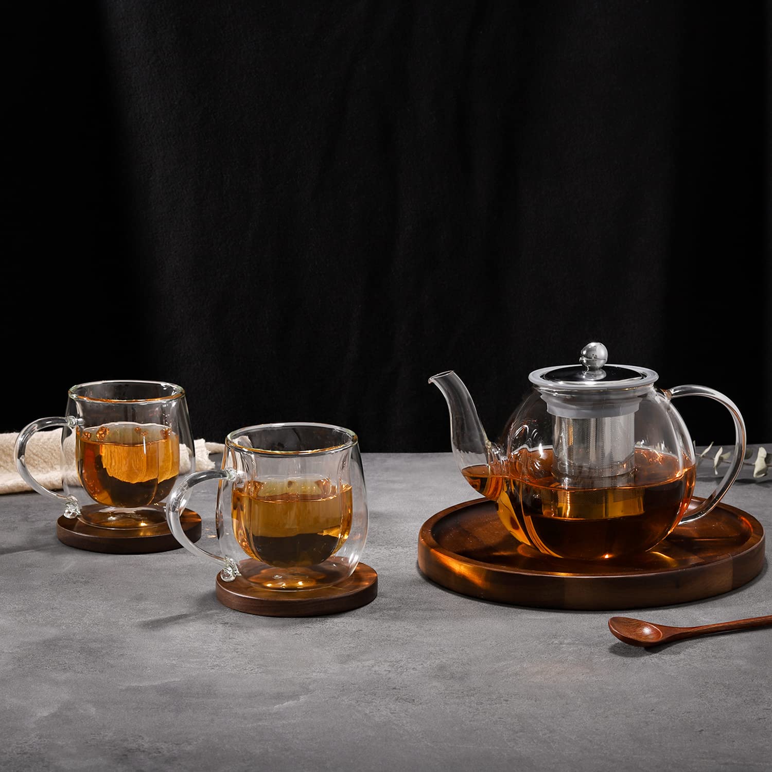 【特価セール】VKCHEF ティーポットセット 1000ml大容量 グラスカップ2個 270ml*2 耐熱ガラス 急須 紅茶 ポット おしゃれ 透明 茶こし付き 直火可 食洗機対応 電子レンジ対応 お茶ポット クリアティーポット 緑茶 紅茶 茶ポット 3点入 | Mystiqon