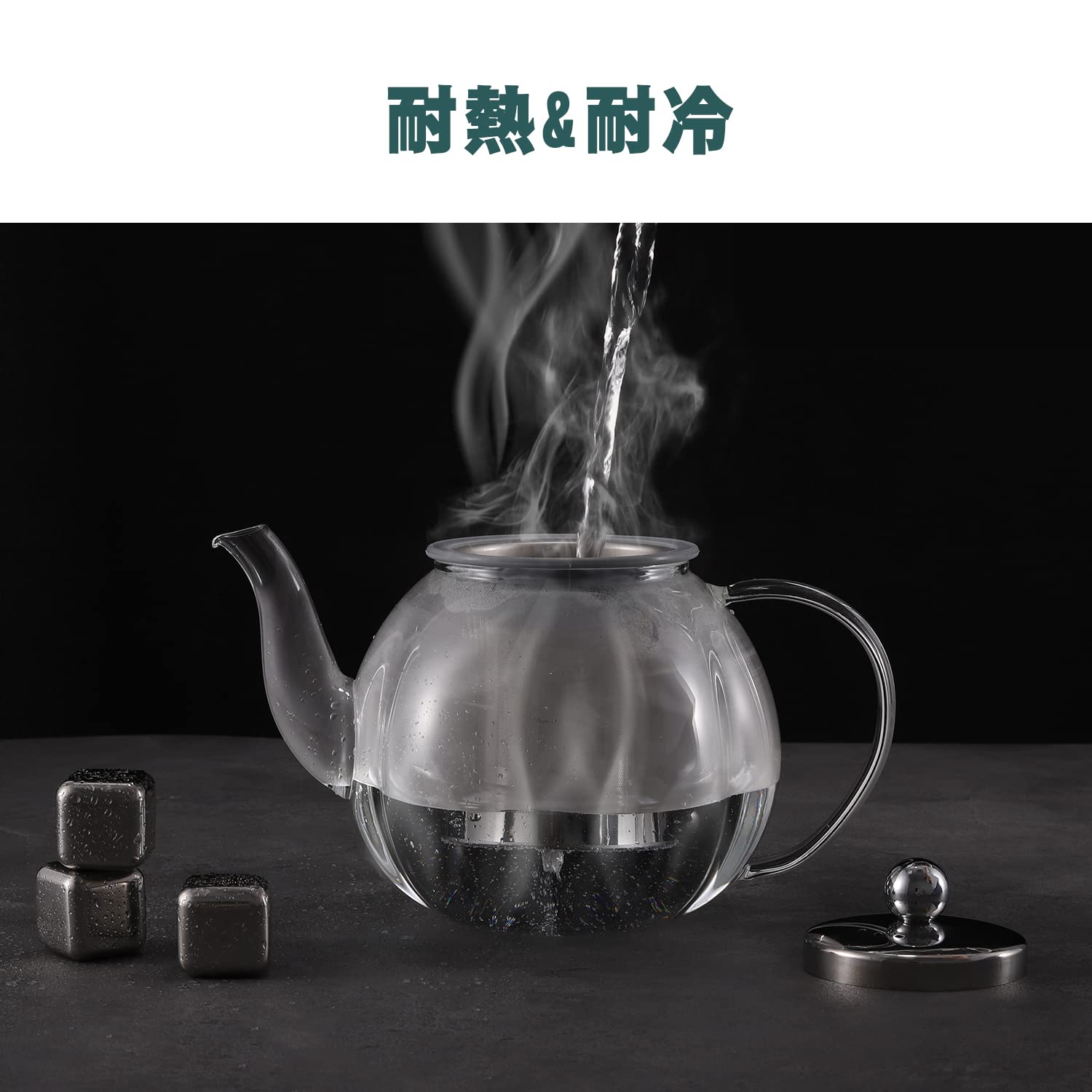 【高品質なステンレス製の茶こし】 耐久性に優れている、ステンレス製の茶こしが付属。そして、簡単に取り外して洗うことできます、さらに、食洗機にも対応。洗いやすく清潔に保てるのも魅力です。長い茶こしなので茶葉がしっかりお湯に浸ってます。