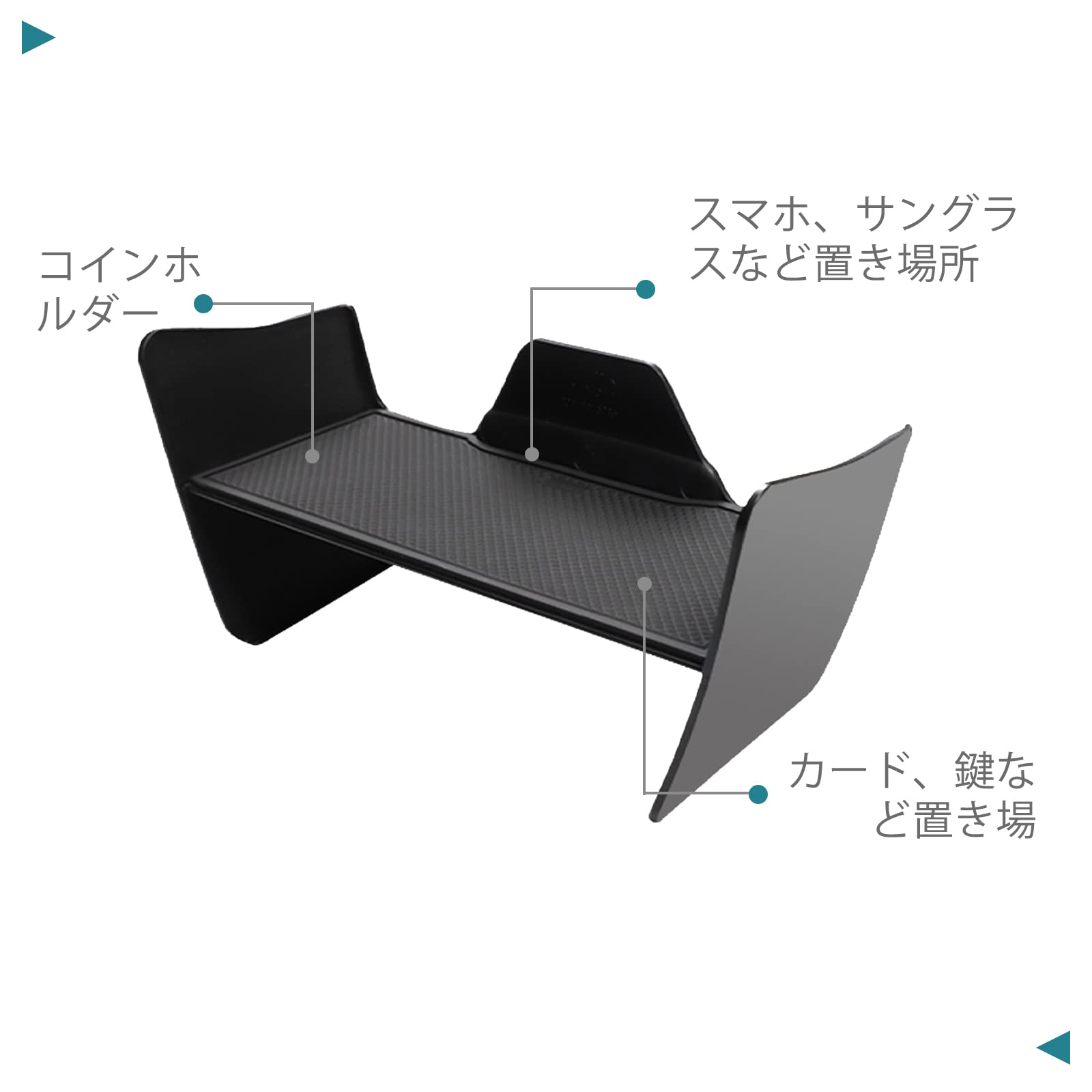 ??【ジャストフィット・二段収納になり】車種専用設計により、ぴったりとフィットします。オープントレイのスペースを最大限に活用し、仕切りエリアとしてご使用いただけます。スマホ、カードなど、小物の収納に最適で、滑り止めのラバーマット付きで運転中のガタガタを防ぎます。充電ケーブル類を通す穴があるので、USBメモリー差したまま使えます。非常に実用的なハリアー80アクセサリーです。