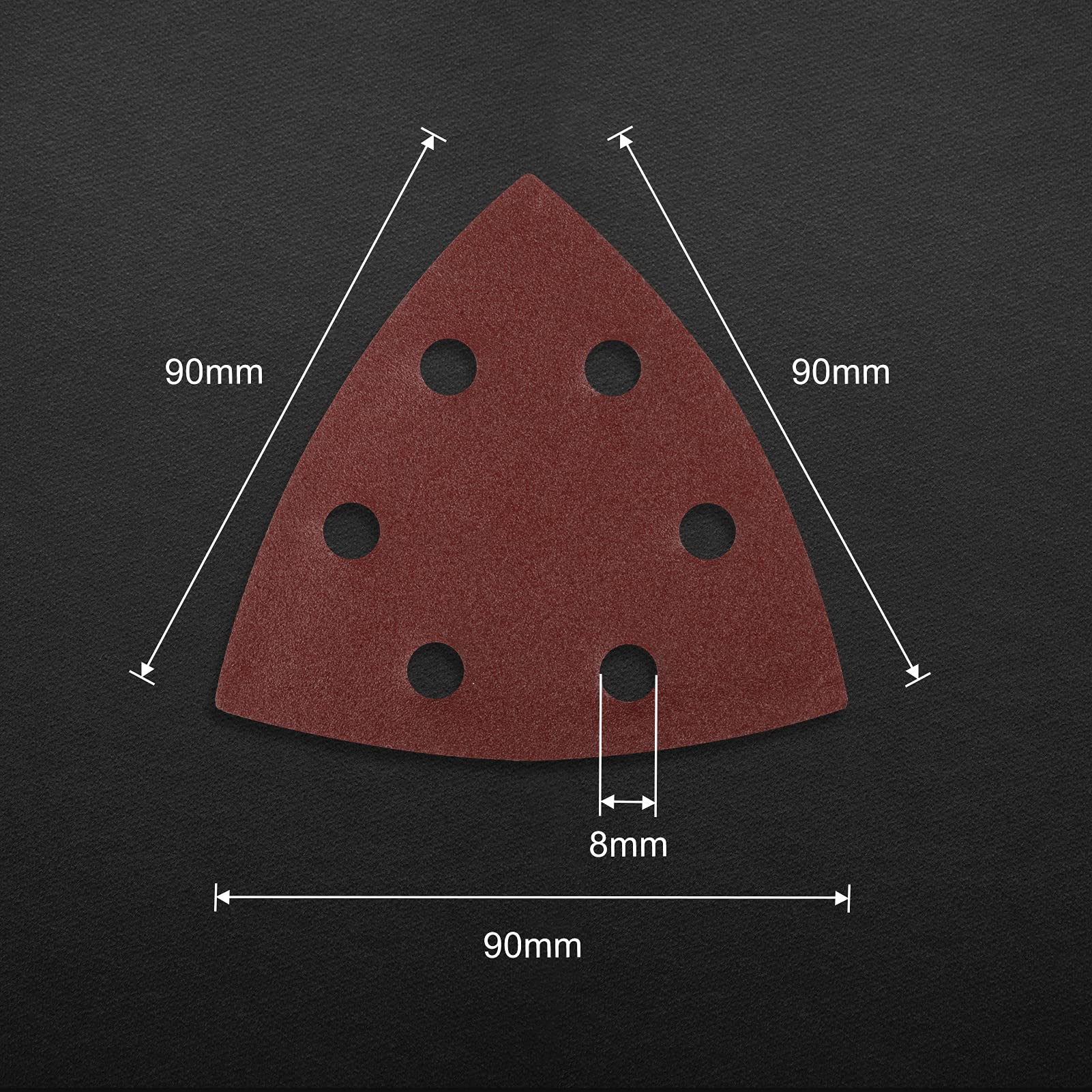 LEONTOOL サンドペーパー 三角 マジック式 木工用 #240 90mm 50枚セット 6穴 吸塵穴付 金属 鏡面磨き 生地 研磨用 プラスチック研削 光沢仕上げ 電動サンダー用 紙やすり