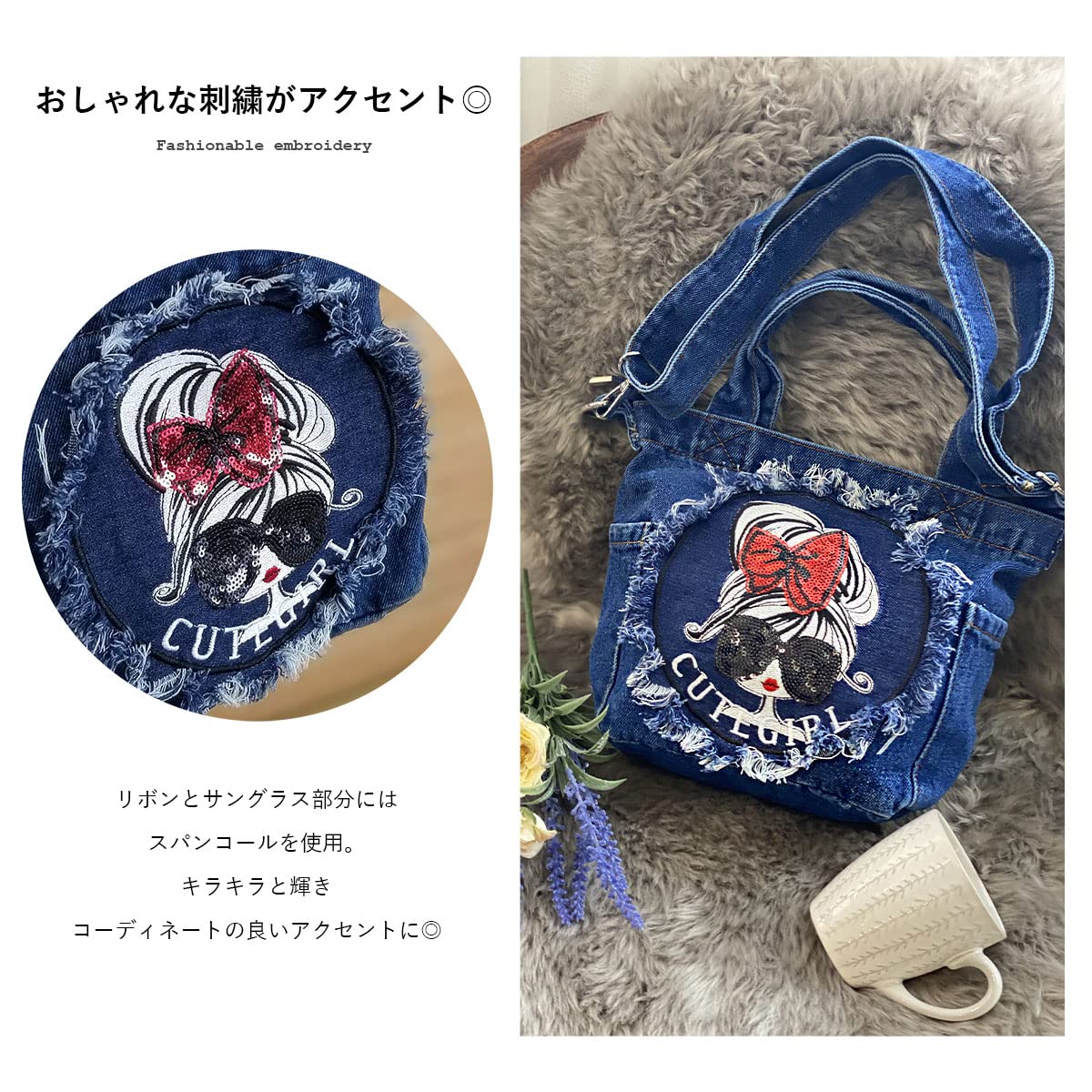[DIVA Rose] ショルダーバッグ レディース ミニ 2way バッグ 小さめ 斜めがけ 軽い 軽量 ハンドバッグ トートバッグ デニム
