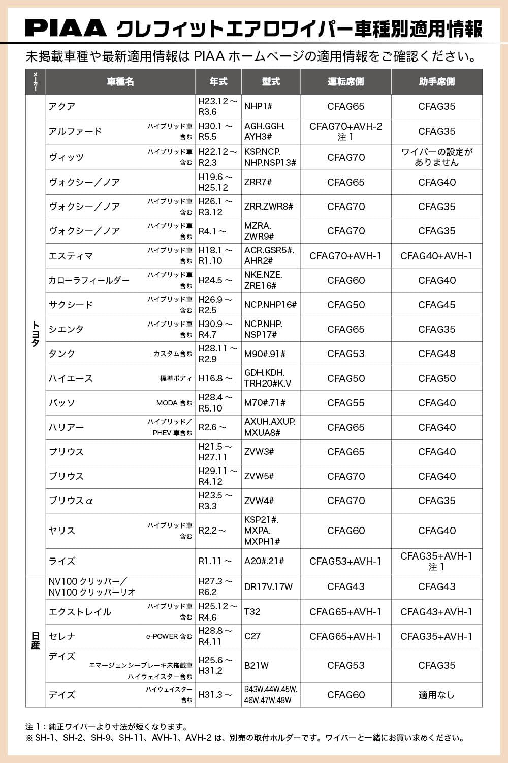 PIAA(ピア) ワイパーブレ—ド エアロワイパーブレード 600mm クレフィットエアロ 1本入 呼番96 CFAG60 メーカー品質グラファイトコーティングゴム 替えゴム交換可能