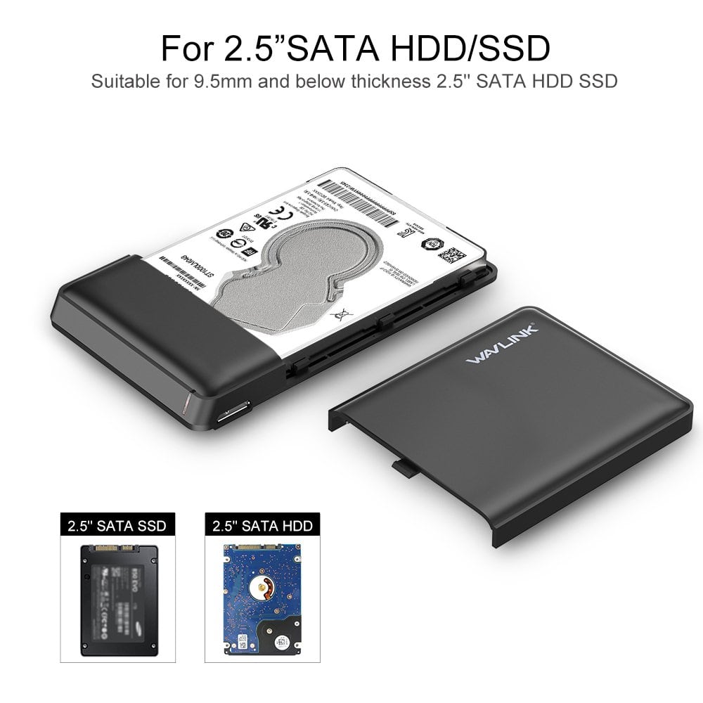 【在庫処分】Wavlink 2.5インチUSB 3.0ハードドライブディスクHDD外部エンクロージャケース9.5mm 7mm 2.5SATA HDDおよびSSDに対応、 USB 3.0ケーブル付き | Mystiqon