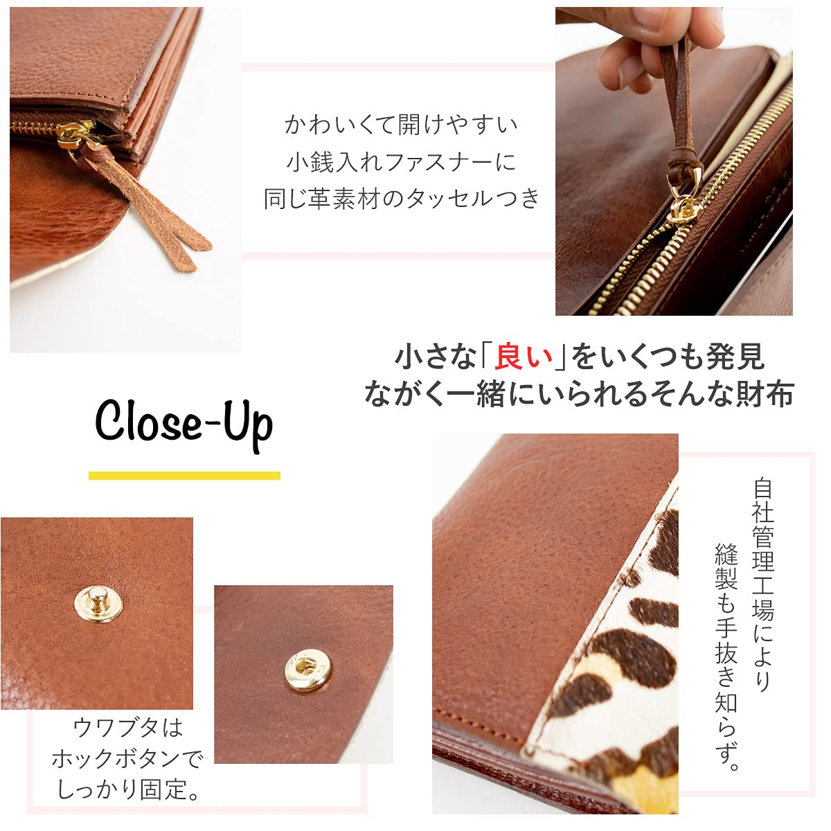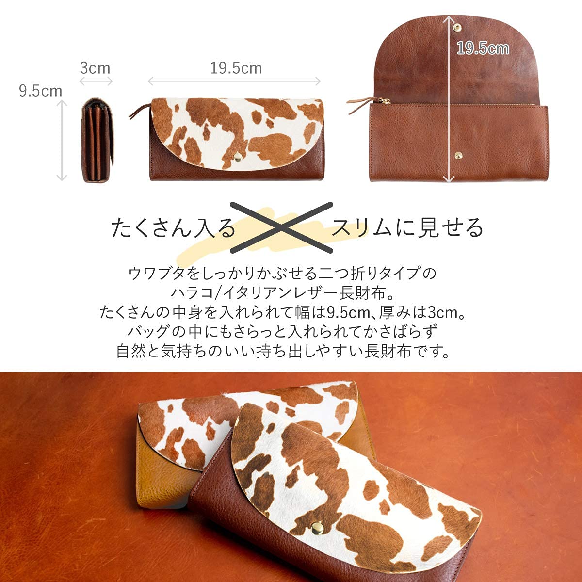レザーの質感を生かした選べる2カラーのラインナップです。 かわいい、おしゃれ、クール、カジュアル、ビジネス、フォーマルなどスタイル問わずにお選び頂けます。 cowbrown (ブラウン) / Cow (ダークブラウン)