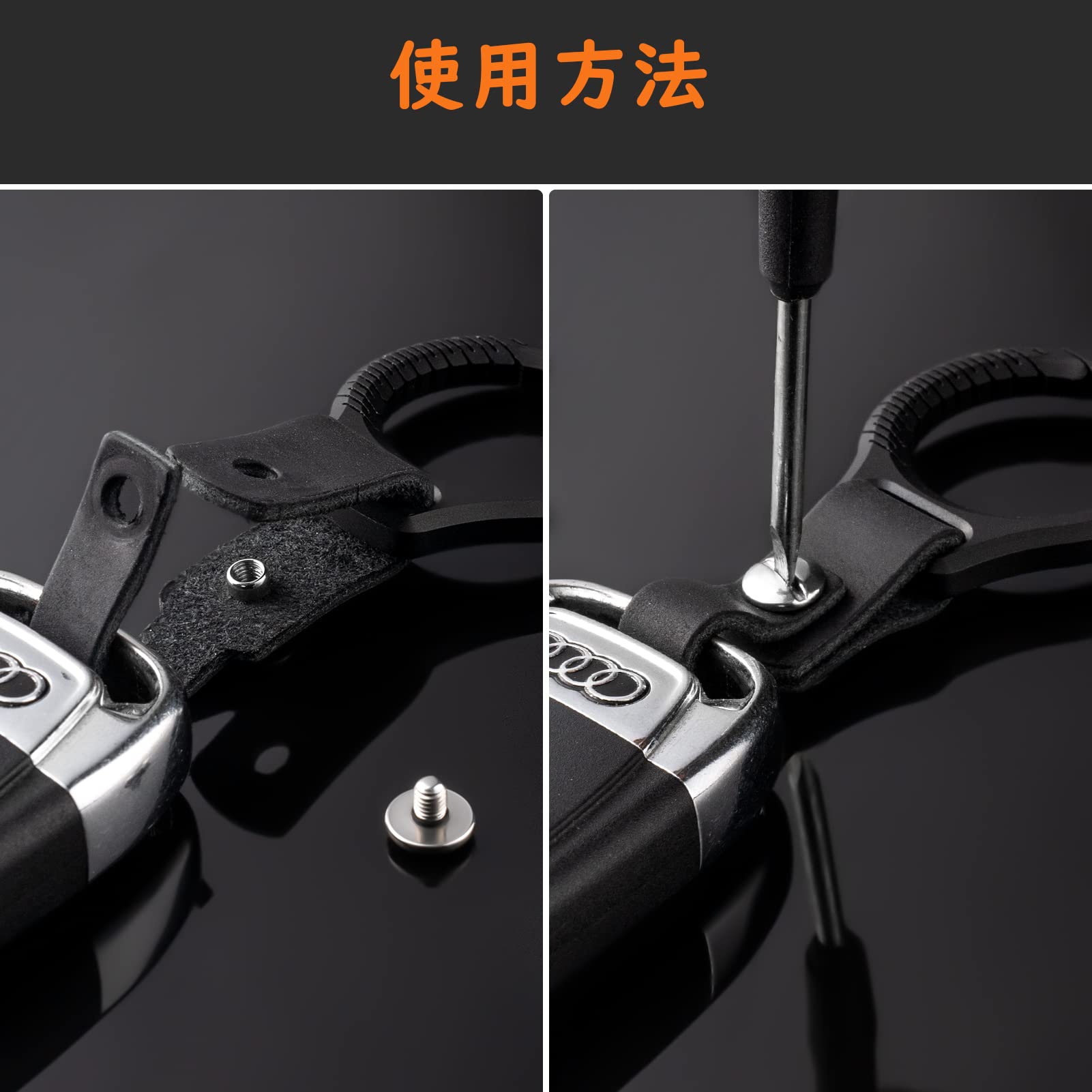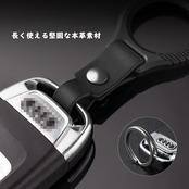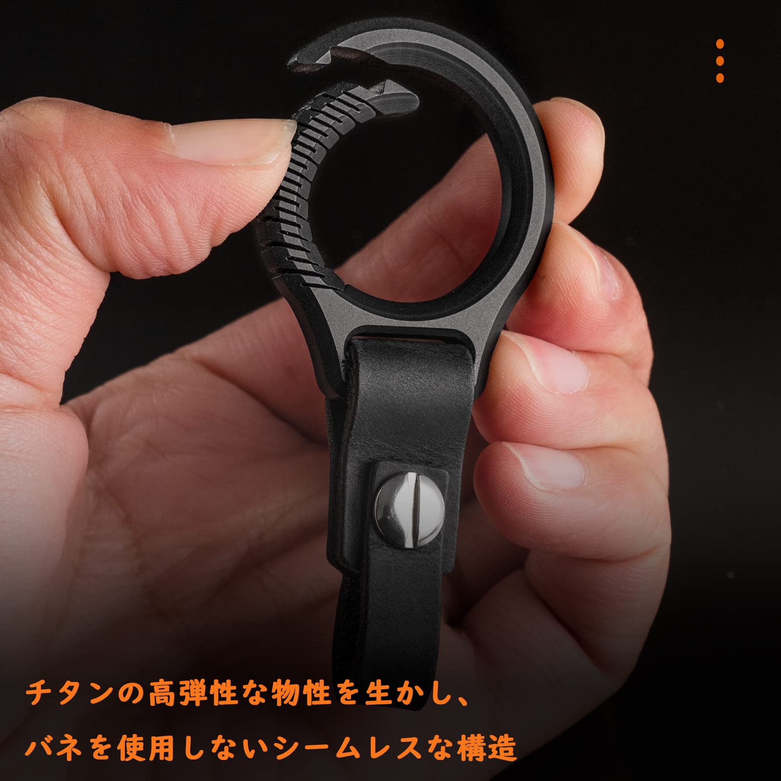 [使い勝手がいい]堅固な本革素材と軽くて強いチタン合金製加工を施した独特の形をしたキーホルダーの組み合わせで、ビジネスシーンでも違和感なくお使いいただけます。おしゃれなデザインだけでなく、チタンの高弾性な物性を生かし、バネを使用しないシームレスな構造となっております。