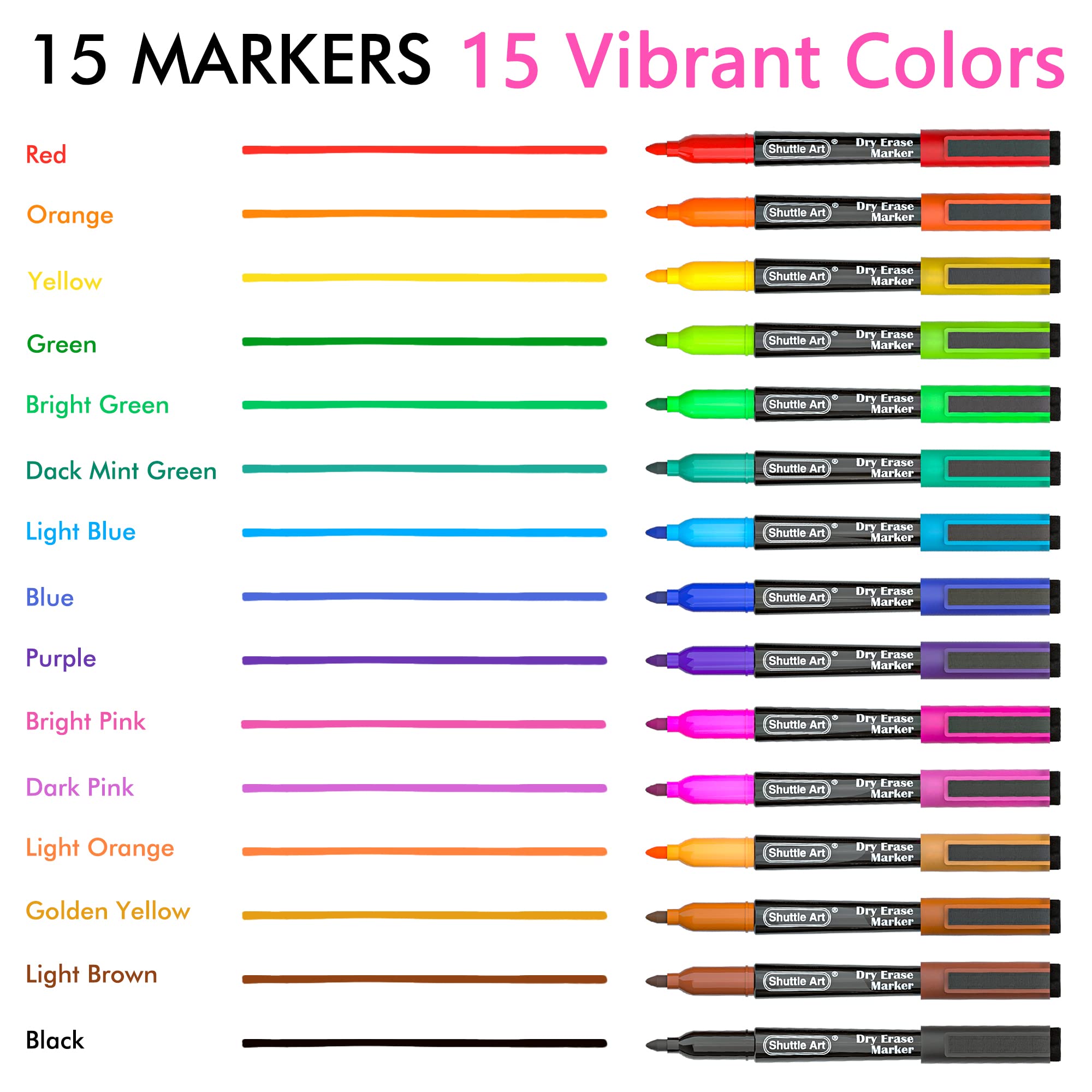 Shuttle Art (シャトルアート) 15色 マグネットホワイトボードマーカー 消去付き 細字 ホワイトボード/ホワイトボード/ミラーへの書き込みに最適 学校/オフィス/自宅用
