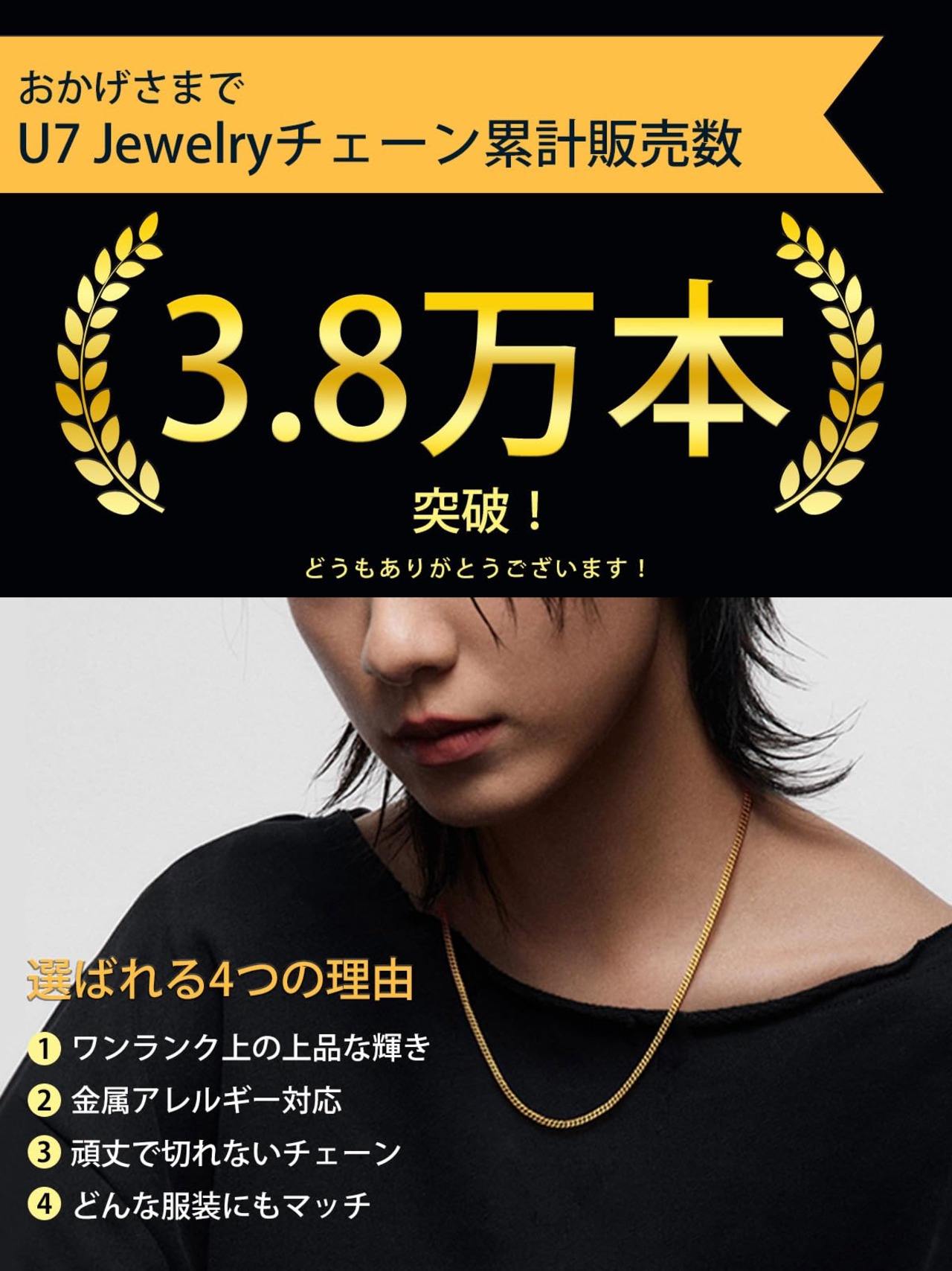 U7 ネックレス メンズ ゴールド 喜平チェーン 3mm 45cm〜75cm 極細 ロングチェーン アレルギー ストリート ヒップホップ アクセサリー