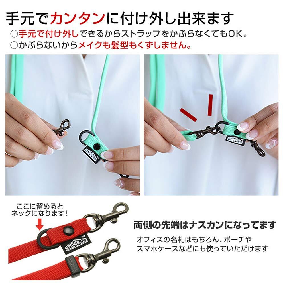 [HIGHCAMP] ハイキャンプ 2way ネック ストラップ 斜め掛け ショルダーストラップ 約70cm〜約135cm 長さ調節可能 スマホ 携帯 落下防止 ネックストラップ 日本製
