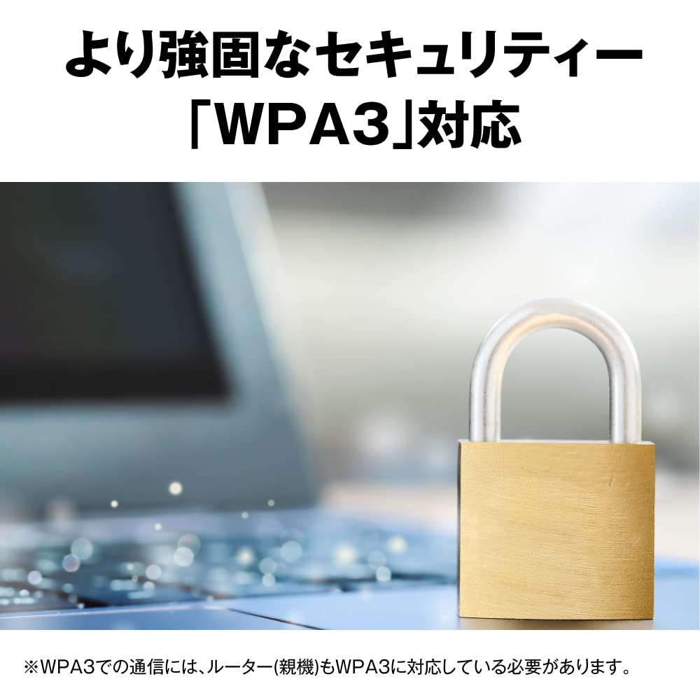 1 Wi-Fi 4対応 1x1 150Mbps Wi-Fiアダプター2 超コンパクトサイズ。挿したままでも持ち運びが可能。3 より強固なセキュリティ WPA3 Personal対応。