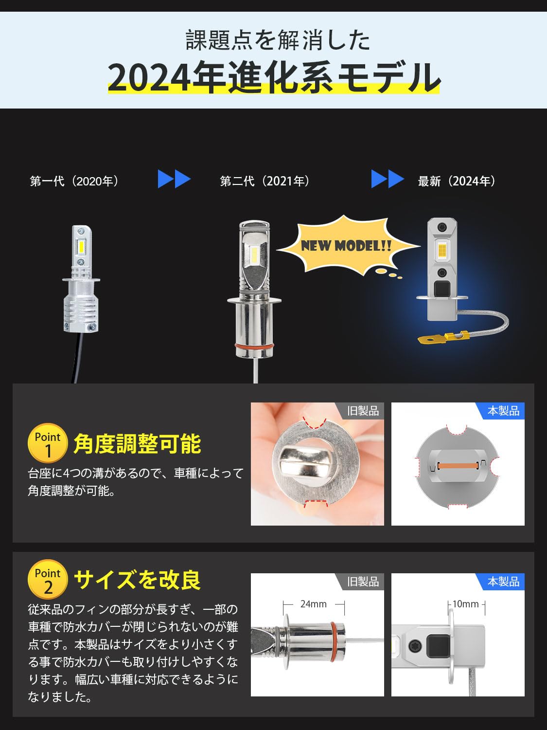 【2024年進化版h3 led フォグランプ】従来のh3 led フォグランプ はフィンの部分が長すぎ、一部の車種で防水カバーが閉じられないのが難点ですが、こちらのh3 led フォグランプはサイズをより小さくする事で防水カバーも取り付けしやすくなり、改造工事が必要なく、無極性設計、複雑な配線は一切ない、ポン付で簡単に付け替え出来ます!