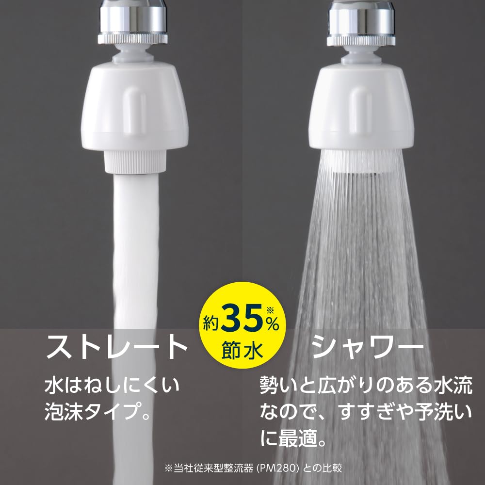 SANEI(サンエイ) キッチンシャワー 節水35% 首ふり360度回転式 ストレート・シャワ切替式 アダプター付 PM254 ホワイト