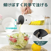 【片手操作・自動開閉】醤油差しは傾けると自動的に開き、直立すると閉じ、片手で簡単に注ぐことができます。炒め物など、オイルがたっぷり使用される料理の際にご使用されると便利です。