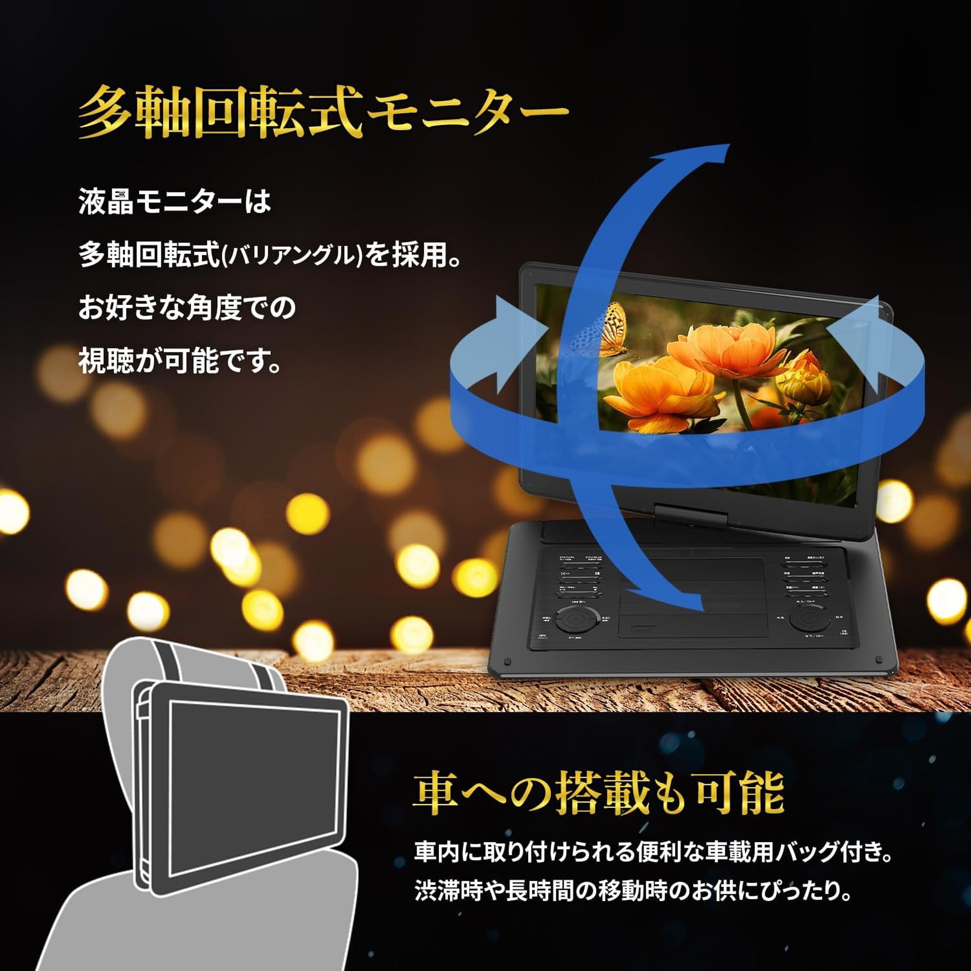 【在庫処分】[東京Deco] 地デジ 録画機能搭載 15.6型 ポータブルDVDプレーヤー フルセグ 15.6インチ [大型画面15.6V!地デジ録画機能] 大画面 cprm対応リージョンフリー 充電 地デジ 180度回転 15型 液晶 スクリーン 大容量充電バッテリー 車 10 12 14 o000 | Mystiqon