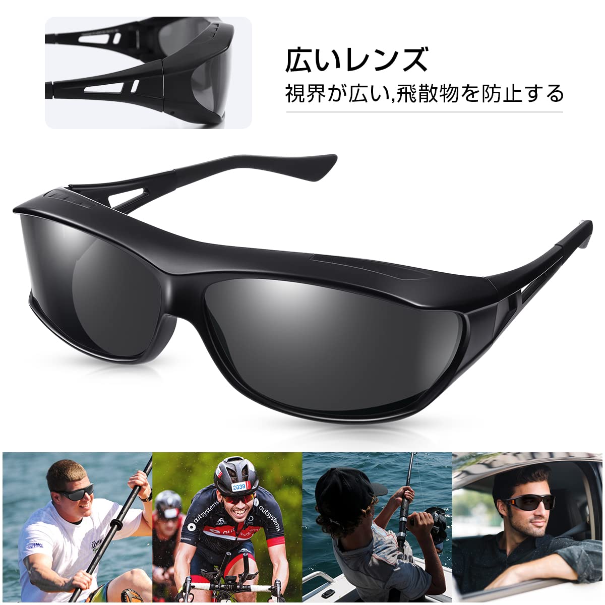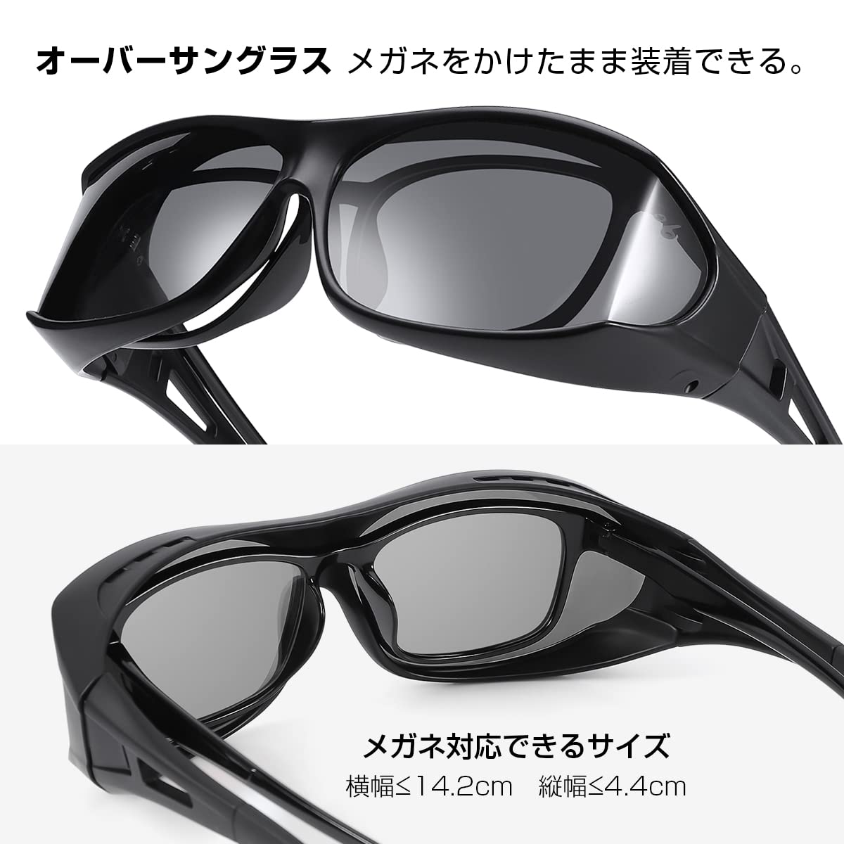 普段使っているメガネの上に、そのままかけられる偏光オーバーサングラスです。
