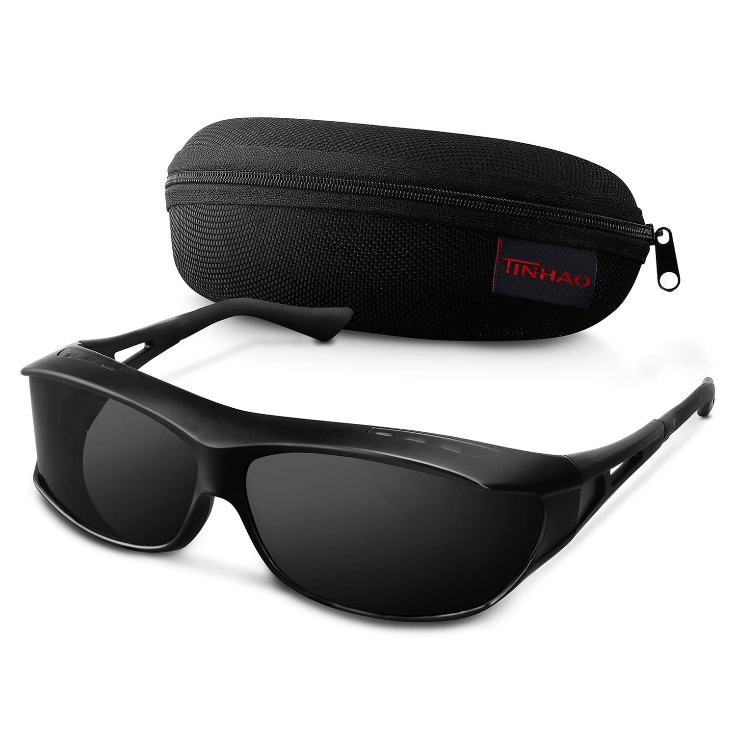 TINHAO オーバーサングラス レンズ曲がる 偏光サングラス メガネの上からかけられる UV400 サイクリング ドライブ 釣り ランニング 野球 ブラック
