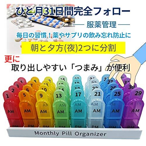 MIC06 1か月 薬ケース 1ヶ月分 薬箱 大容量 薬入れ おしゃれ 31日用 飲み忘れ 防止 収納 ピルケース 携帯用 ピルケース 薬 入れる カレンダー 薬ポーチ 服薬管理 クスリ箱 くすりケース