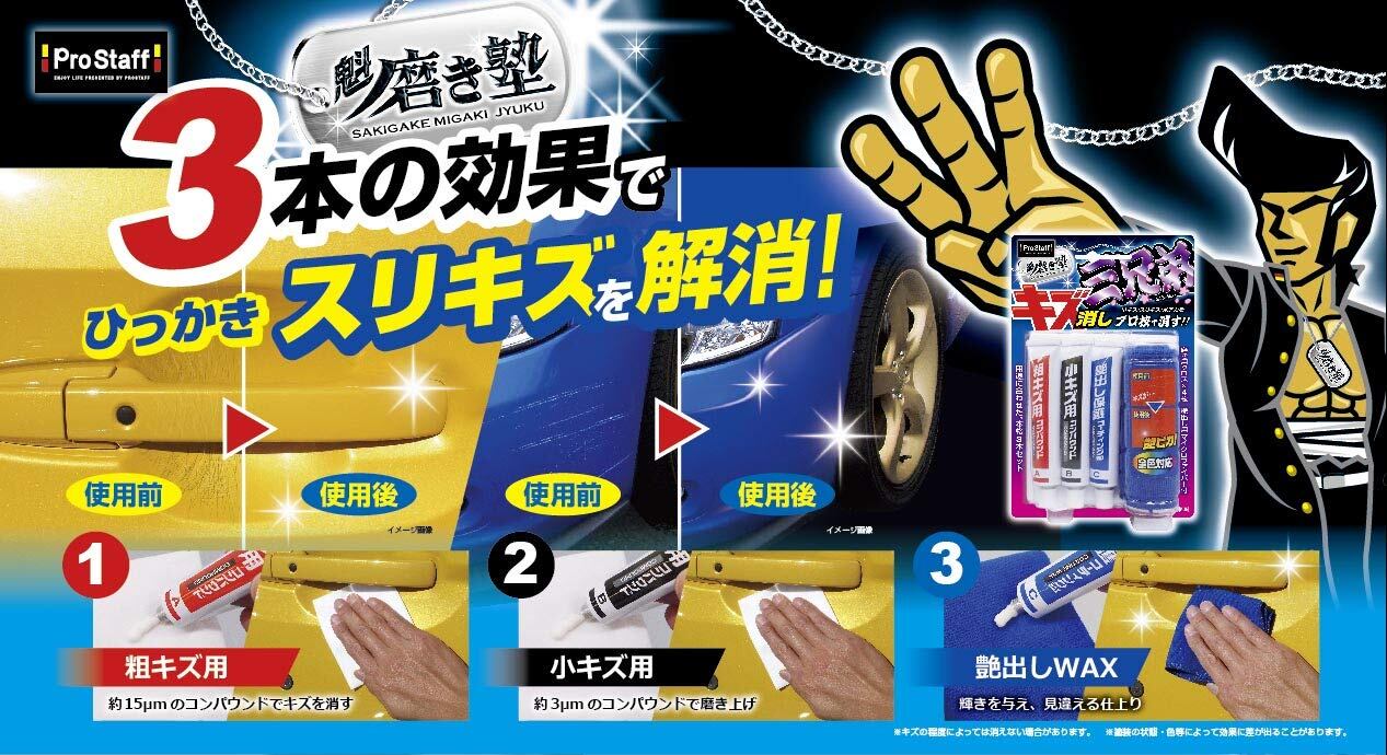 プロスタッフ(Prostaff) 魁磨き塾 三兄弟 洗車用品 コンパウンド 傷消しコンパウンド 磨き用クロス×4枚/艶出し用マイクロファイバー×1枚付 S180