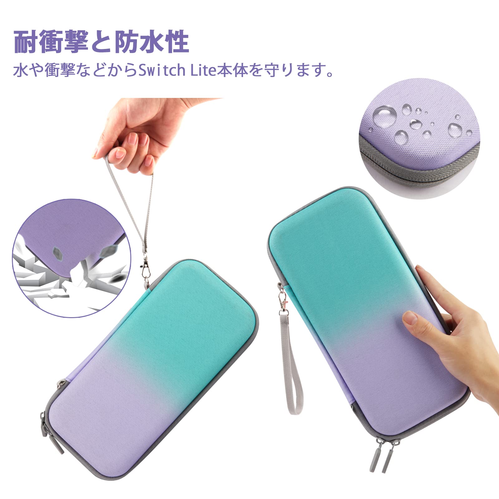 Switch lite ケース ニンテンドースイッチライトケース Emekon グラデーションカラー キャリングケース 持ち運び便利/軽量/耐衝撃/可愛い ゲームカード10枚収納 ジョイコン 全面保護 ストラップ付き