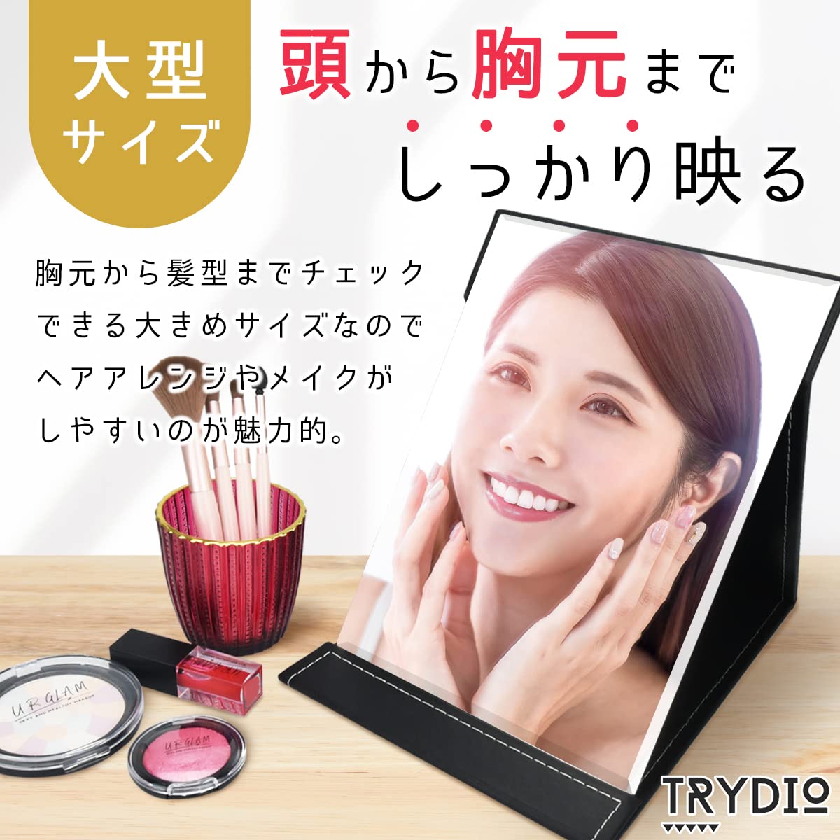 TRYDIO 鏡 卓上 鏡 手鏡 卓上ミラー 割れない鏡 卓上鏡 スタンドミラー コンパクトミラー (L)