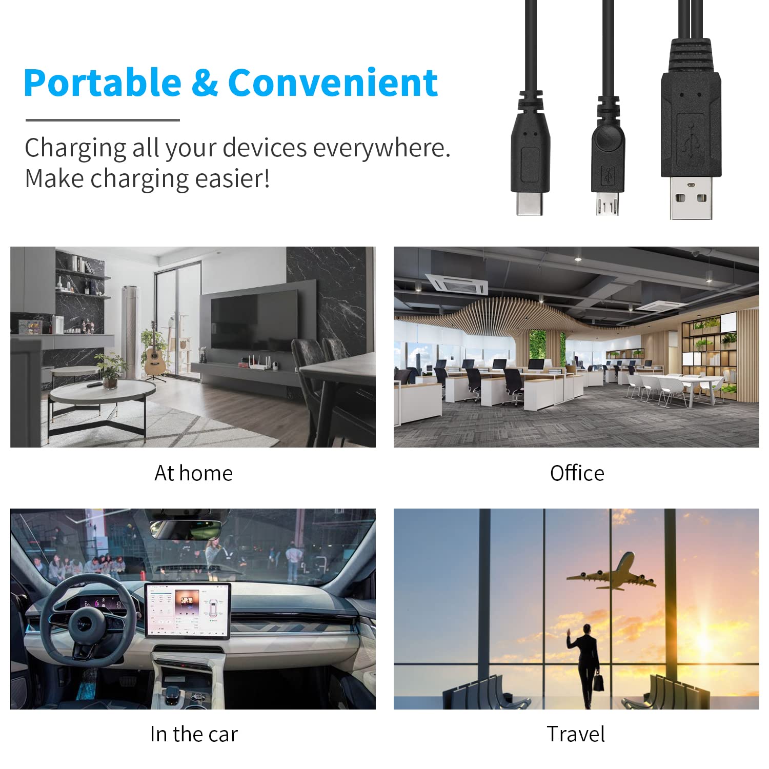 マルチ充電ケーブルは、異なる電子機器を同時に充電できます。 USB Cポートの電子機器とマイクロUSBポートの電子機器を充電する必要がある場合は、ケーブルを2本持ち運ぶ必要はありません。