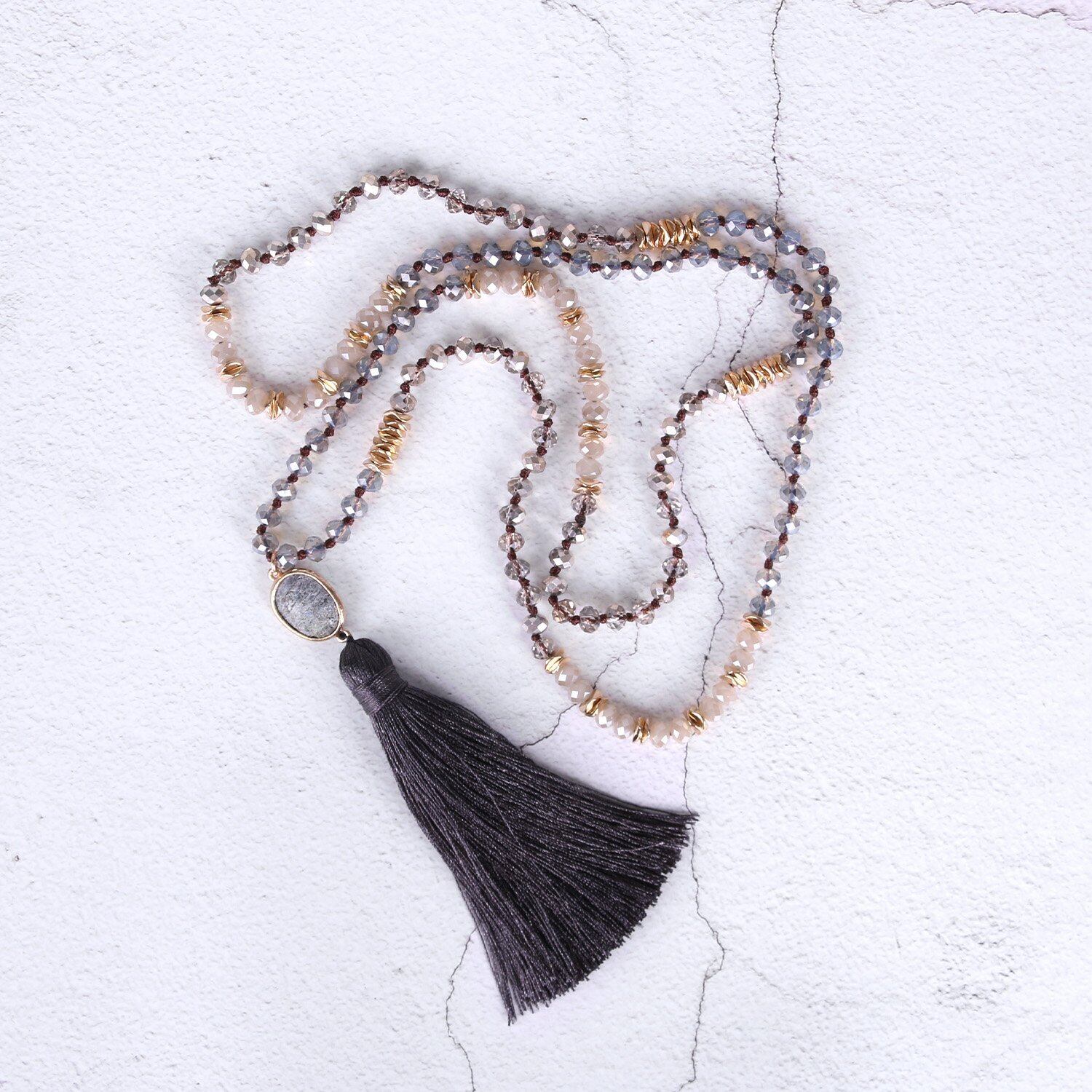 Kelitch 6MMクリスタルabビーズロングネックレスカラータッセル瑪瑙ペンダント女性ストランドブレスレット用夏(ダークグレー)
