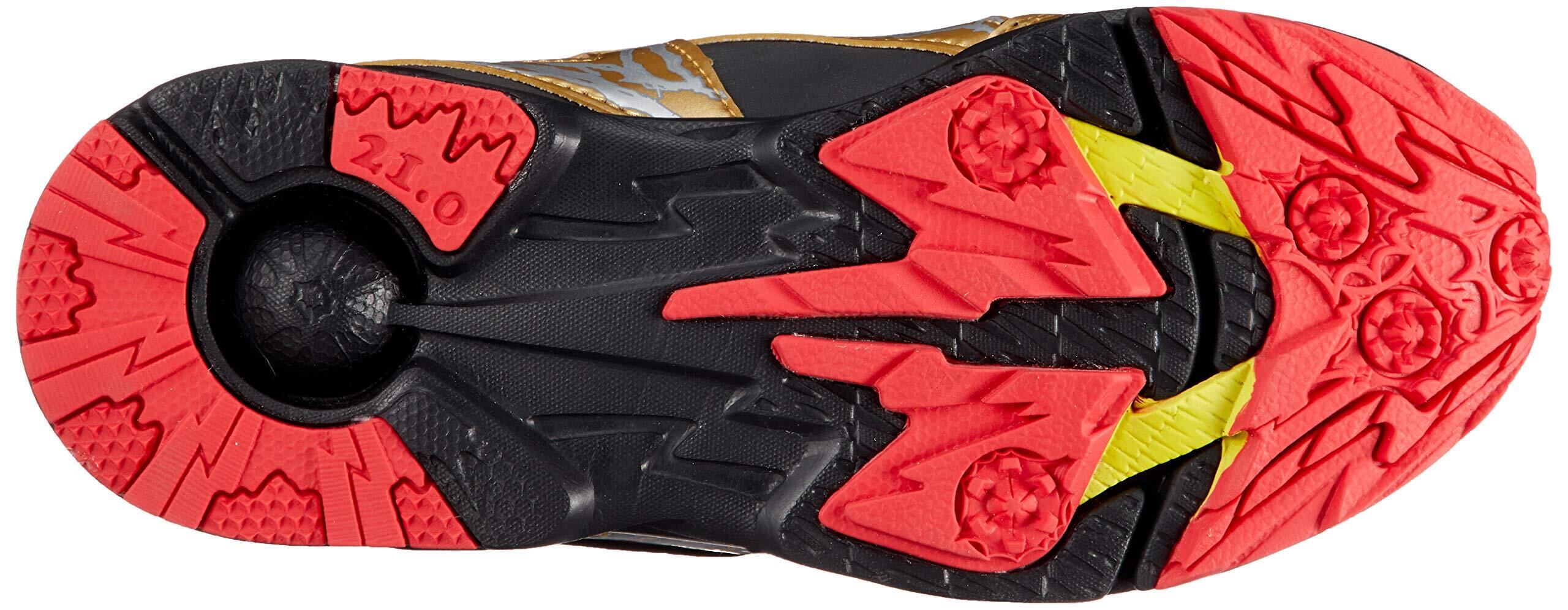 【イナズマスパイク】つま先部に配置したラバー素材のスパイクがスタート時の蹴り出し力をサポート。【イナズマグリップ】優れたグリップ力でしっかり地面をつかむために、靴底にイナズマをイメージした部品を搭載。