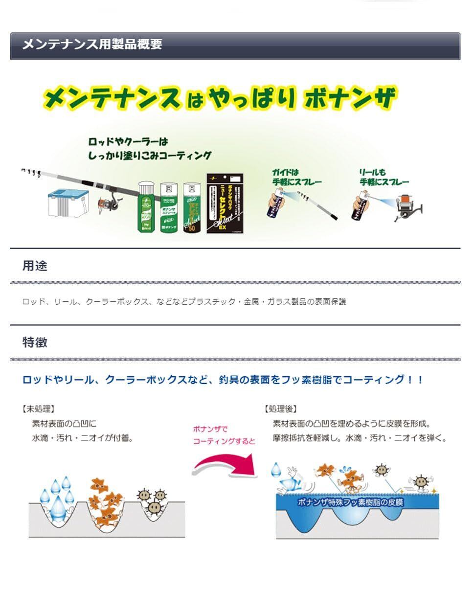 ロッド・クーラーボックスなど、釣具を表面保護。 塗ってカラ拭きすることでより強固な被膜でコーティングします。 ■少量でも無駄なく使える乳液タイプ。 ■優れたスベリ効果と撥水性! ■汚れ・キズ・サビ防止! ■ニオイの付着を防止!乳液タイプなので、少量でも無駄なく使えます。