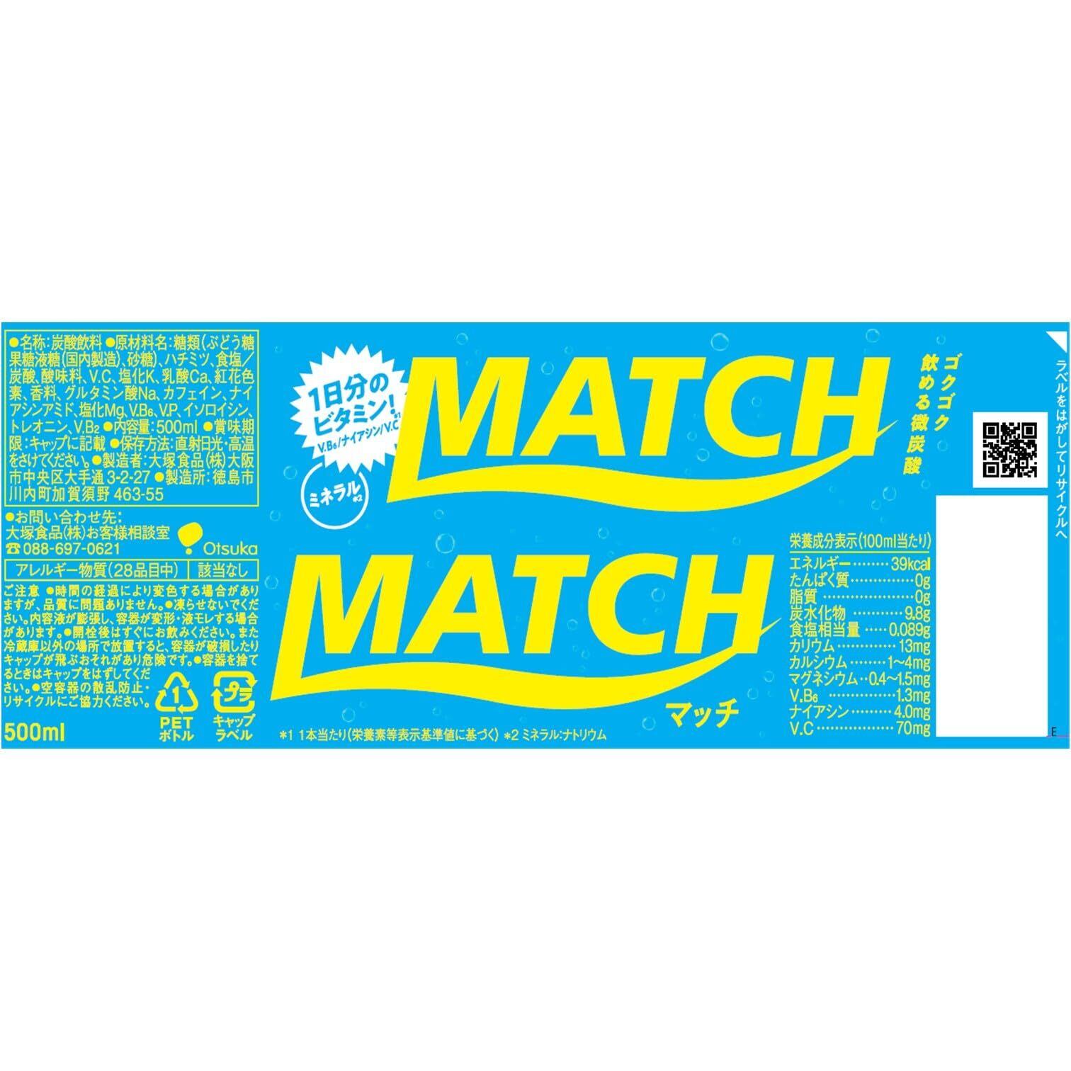 大塚食品 MATCH マッチ ペットボトル ビタミン ミネラル 微炭酸 リフレッシュ チャージ ビタミンC 350mg 500ミリリットル (x 24)