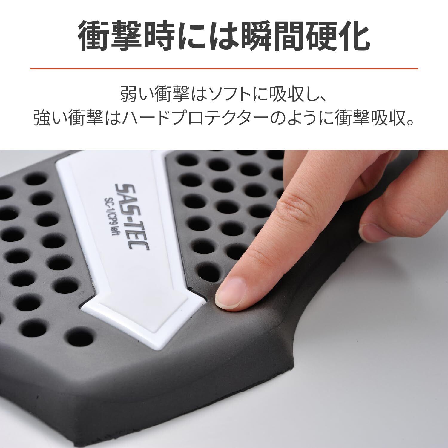普段はソフトな装着感で体にフィットします。弱い衝撃時はソフトに吸収、強い衝撃時には瞬間硬化し吸収することができます。