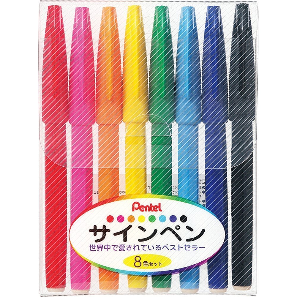 説明 世界中で愛用されている水性ペンのベストセラー『サインペン』の8色セット。なめらかなタッチのアクリル繊維ペン先。