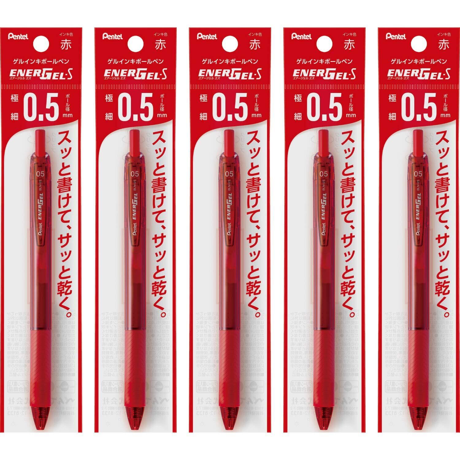 ぺんてる ボールペン ゲルインキ エナージェル エス 0.5mm レッド軸 XBLN125-B 赤 5本