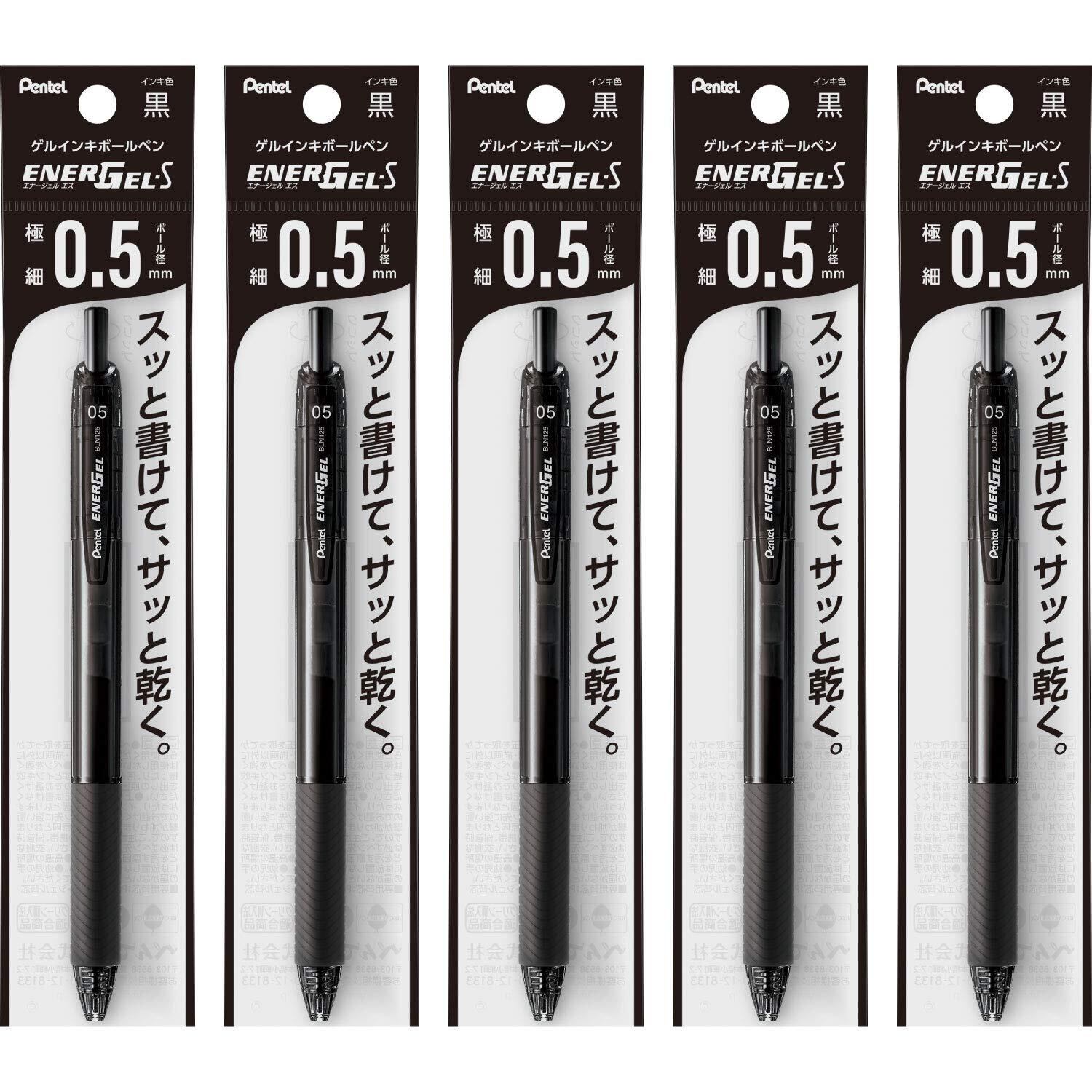 ぺんてる ボールペン ゲルインキ エナージェル エス 0.5mm ブラック軸 XBLN125-A 黒 5本