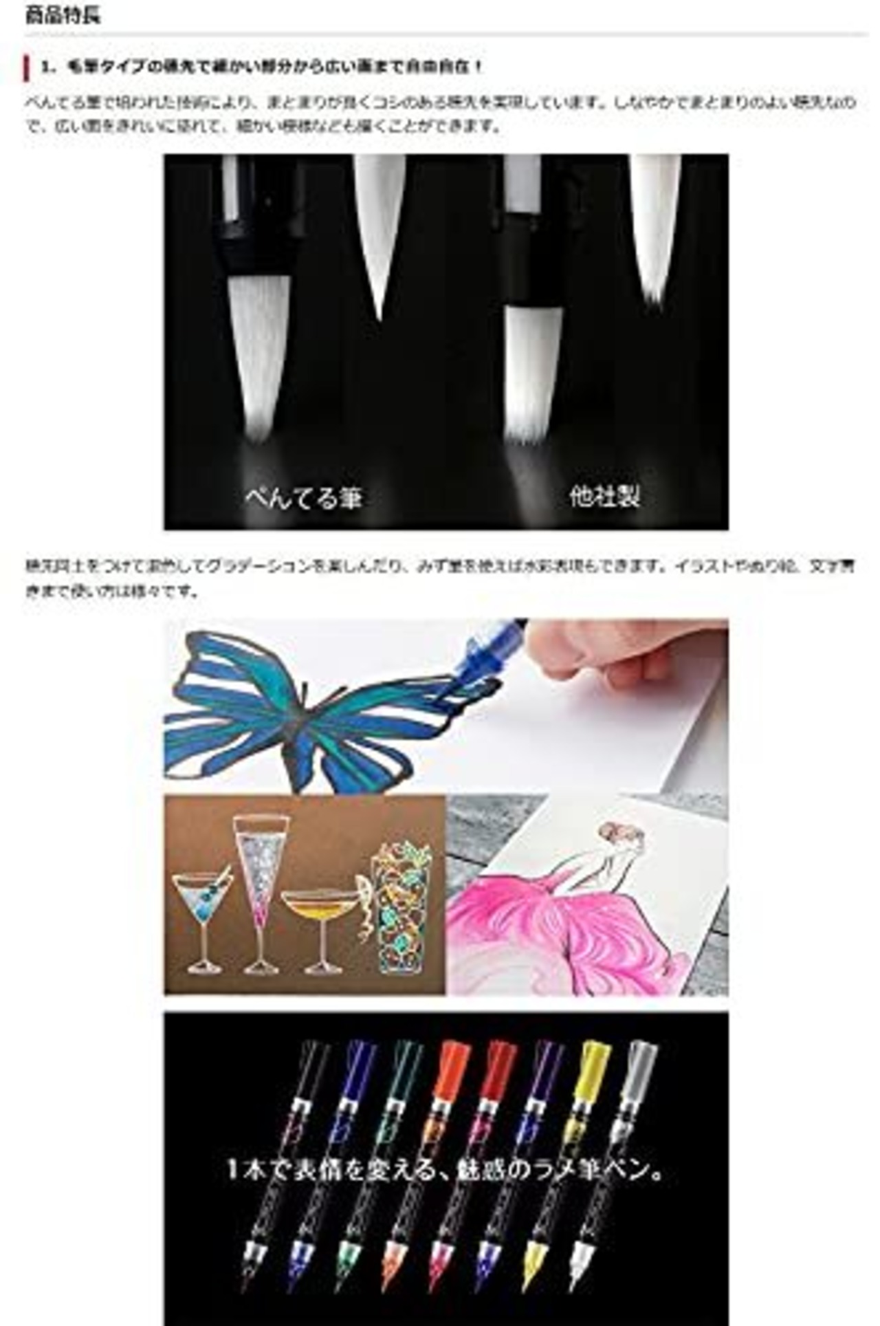 1.毛筆タイプの穂先で細かい部分から広い面まで自由自在!