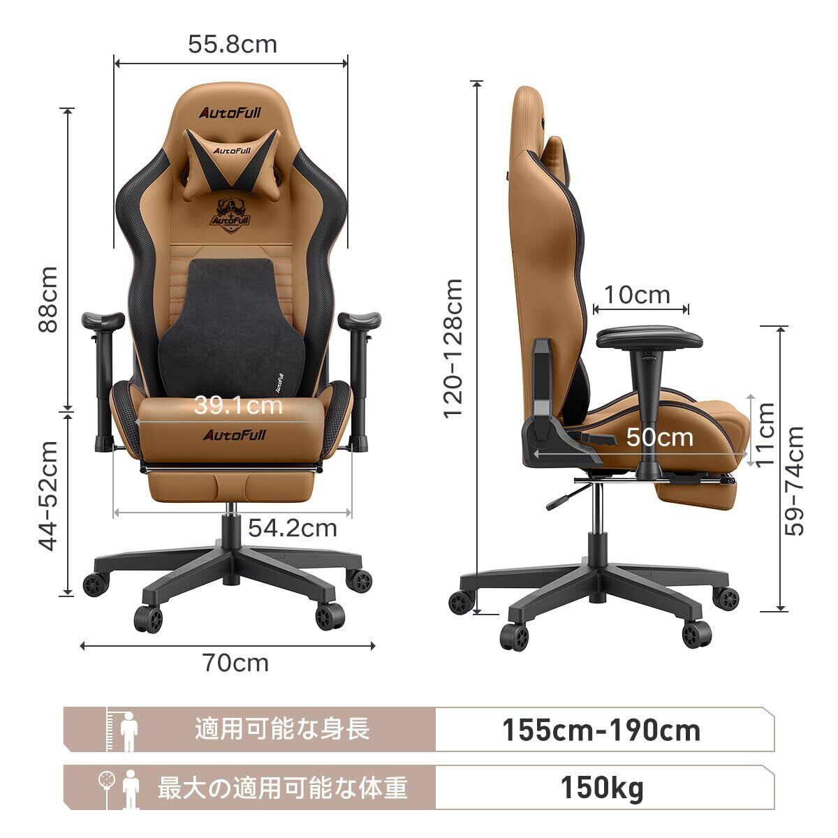 AutoFull(オートフル) ゲーミングチェア デスクチェア 座り心地最高 腰痛対策 昇降アームレスト オットマン付き 在宅 リモート PUレザー 茶色 3年 C3