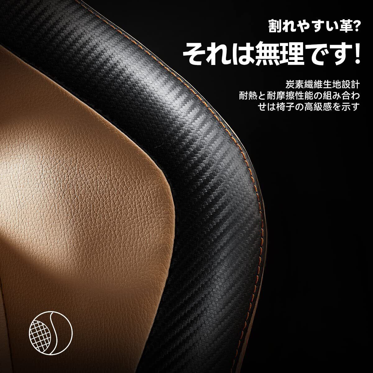 【業界標準を超える高品質材料】高耐久レザー を採用し高級感を保つ時に手触りもスムーズに感じさせられます。長時間のデスクワークには最適のゲーミングチェアです。背もたれと座敷には厚さ11cmの高品質スポンジを使用し通気性が高くなり、夏でも快適に使用できます。本体はフルメタルフレームを採用し、ガスシリンダーもクラス4にアップデートし、そして炭化加工させ、業界最高規格のシリンダーとも言えます。全体の改良で最大耐荷重も150KGになりました。