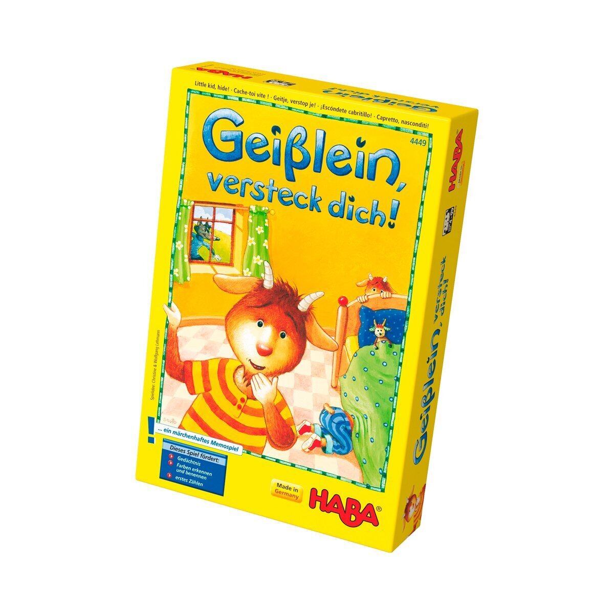 ヤギの隠れ場所6つ、どこに何匹?『子やぎのかくれんぼ』は、童話『7匹の子やぎ』をテーマに、6つの隠れ場所に潜む子ヤギの数をよく覚えておき、サイコロの色で示された場所を言い当て、そこの子ヤギを助けていくゲームです。誰もが知っているお話を元に、簡単なルールで、かわいらしい缶と木のコマが楽しいゲームです。6ヶ所の数くらい覚えられそうなものなのですが、ほどよく忘れてしまい、オオカミがやってきてドキドキします。