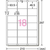 A4判 18面 四辺余白付 角丸/シートサイズ:A4判 (210mm×297mm)/ラベルサイズ:63.5mm×46.5mm(3列×6段)