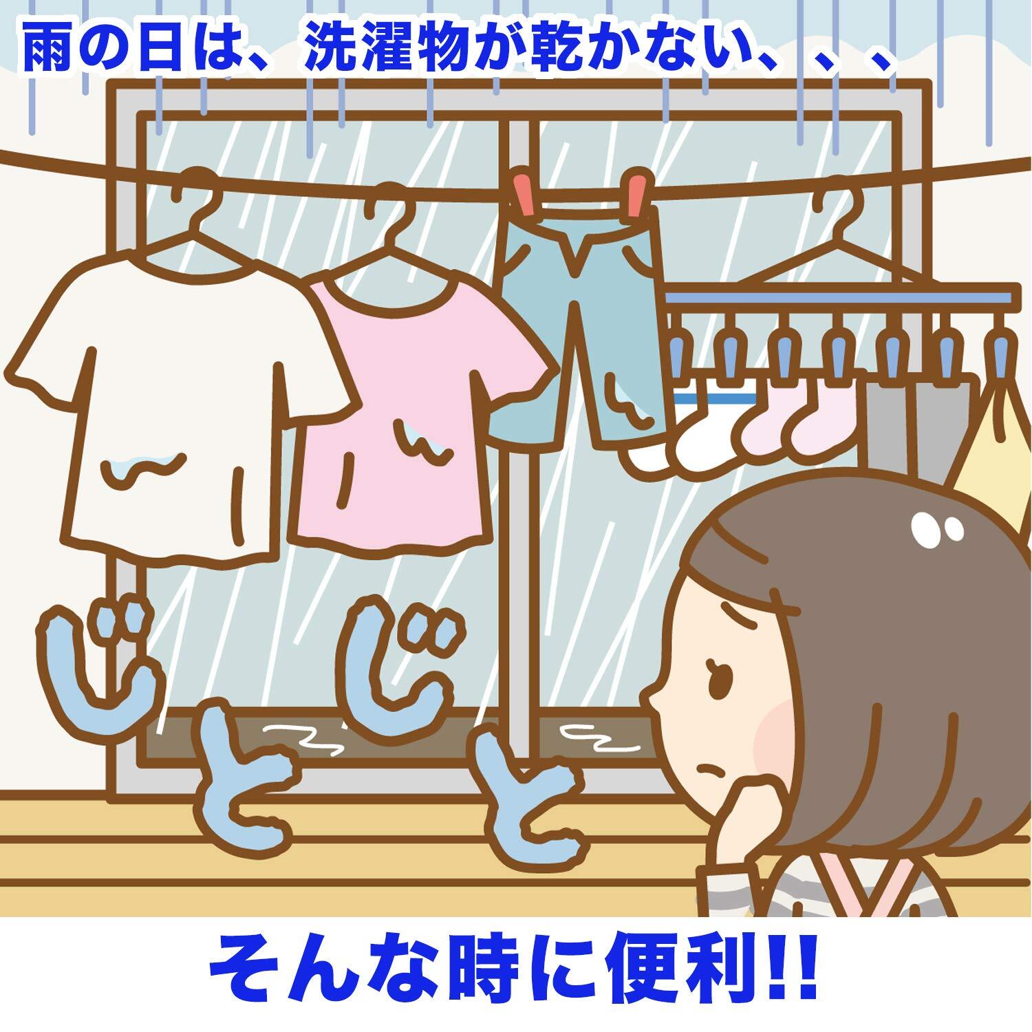 特徴:洗濯物が乾きにくい雨の日や寒い季節にも、ふとん乾燥機を使ってスピード乾燥。丈の長い洗濯物もそのまま干せるロングタイプができました。