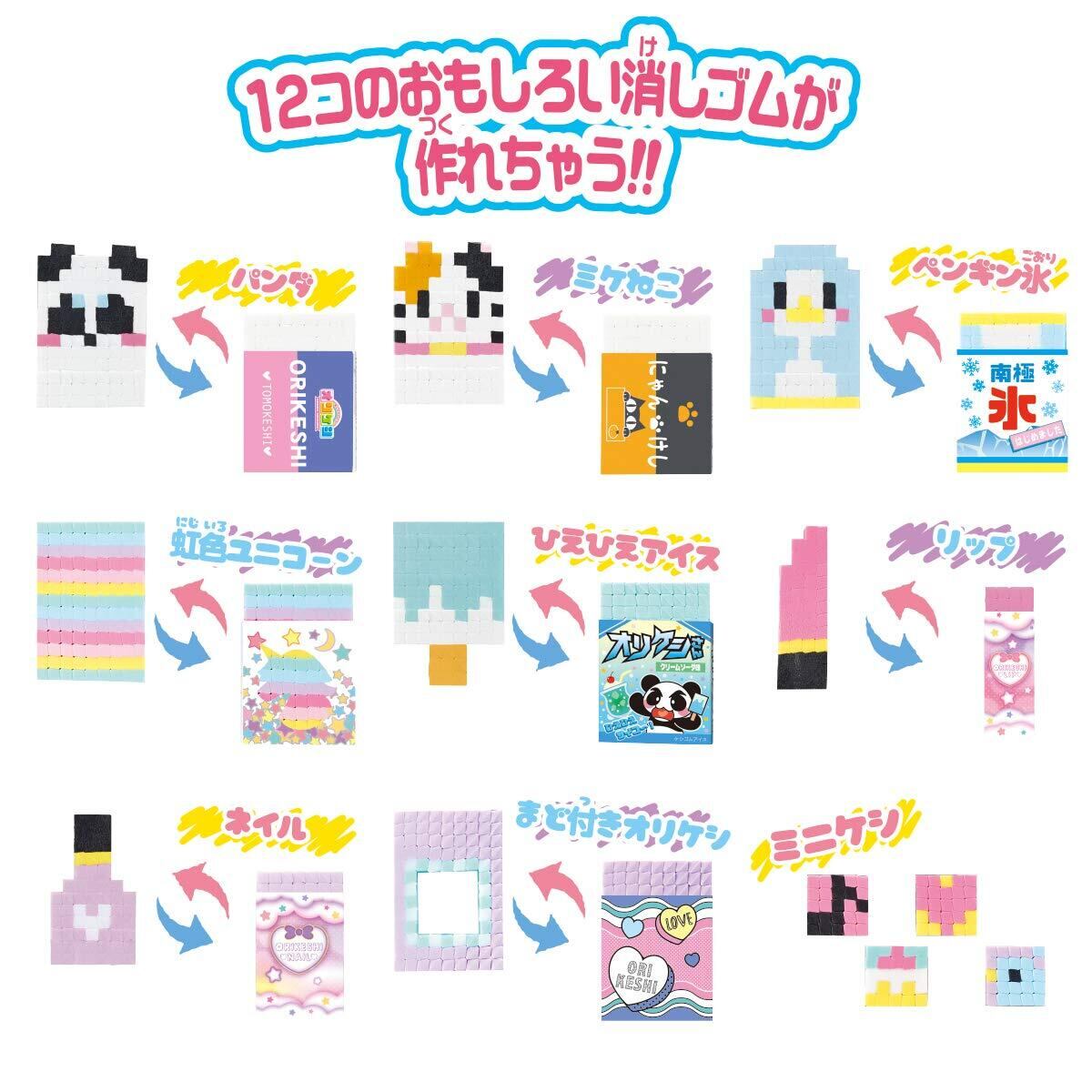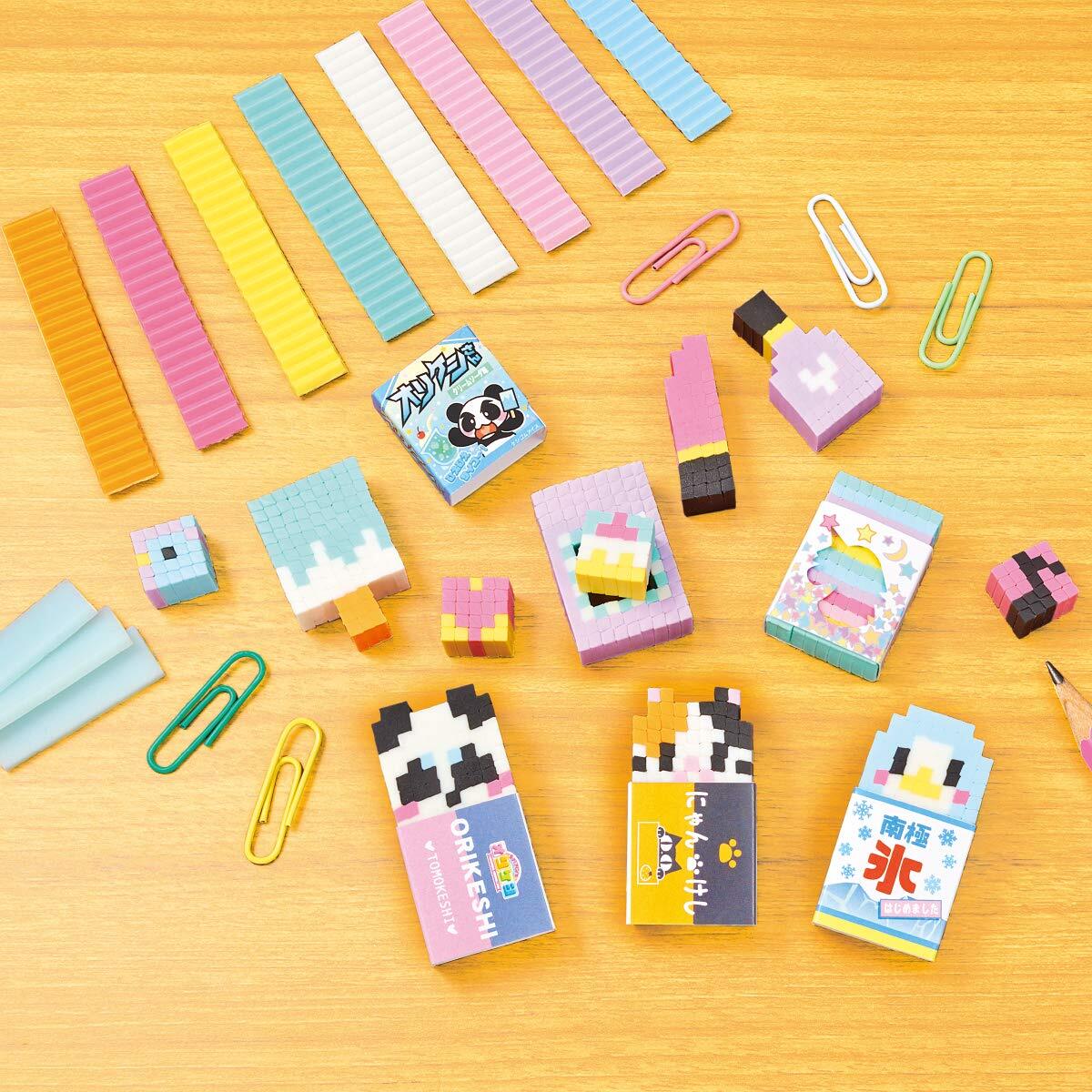 見た目は普通の消しゴムみたい、でも中身は動物やアイスなどが隠れている消しゴムが作れるセットです。
