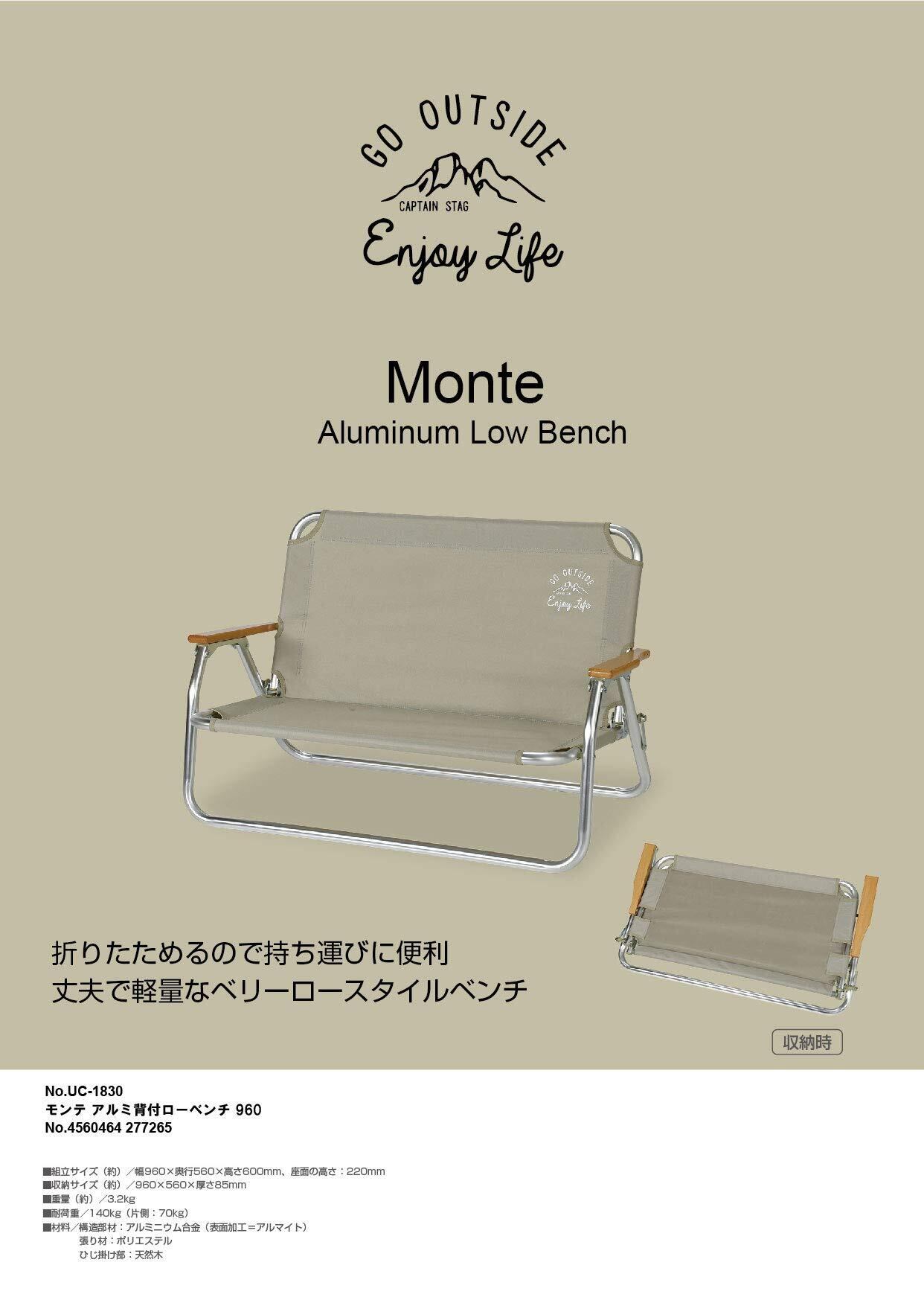 【特価セール】キャプテンスタッグ(CAPTAIN STAG) ベンチ アルミ 背付き ローベンチ W960×D560×H600 モンテ UC-1830 カーキ 幅960×奥行560×高さ600mm、座面の高さ220mm | Mystiqon