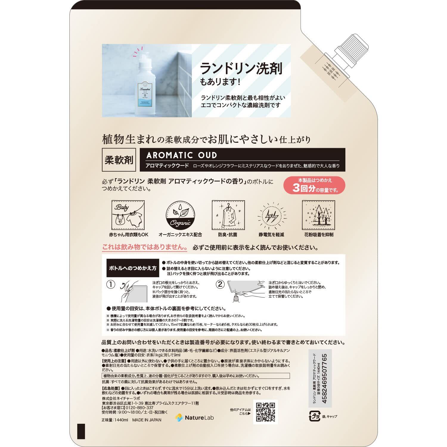 【ケース販売】 ランドリン 柔軟剤 特大容量 アロマティックウード 詰め替え 3倍サイズ 1440ml×8個