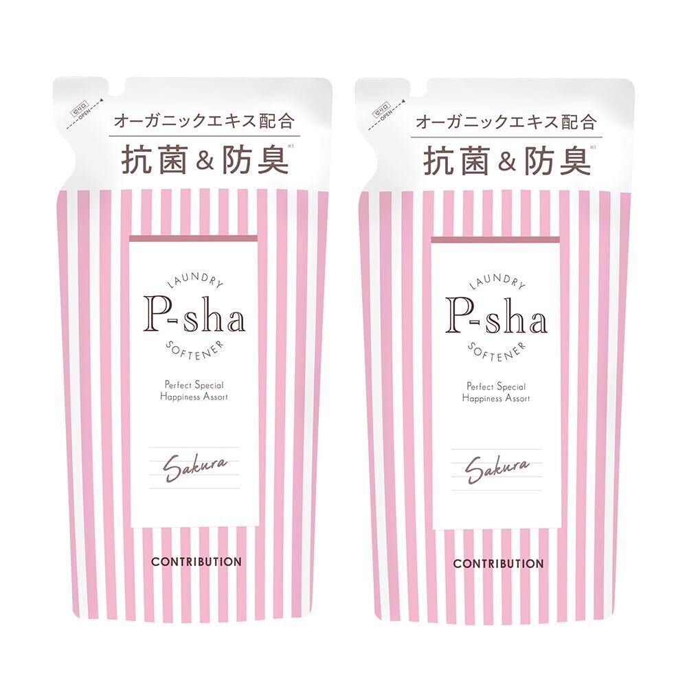 [Nissy(西島隆弘) プロデュース]柔軟剤 P-sha パーシャ 詰め替え 2個セット (サクラ) 24時間抗菌 防臭 静電気防止 柔らか仕上げ ニッシー 洗濯用洗剤 洗濯用品 オーガニックエキス配合 毛玉防止