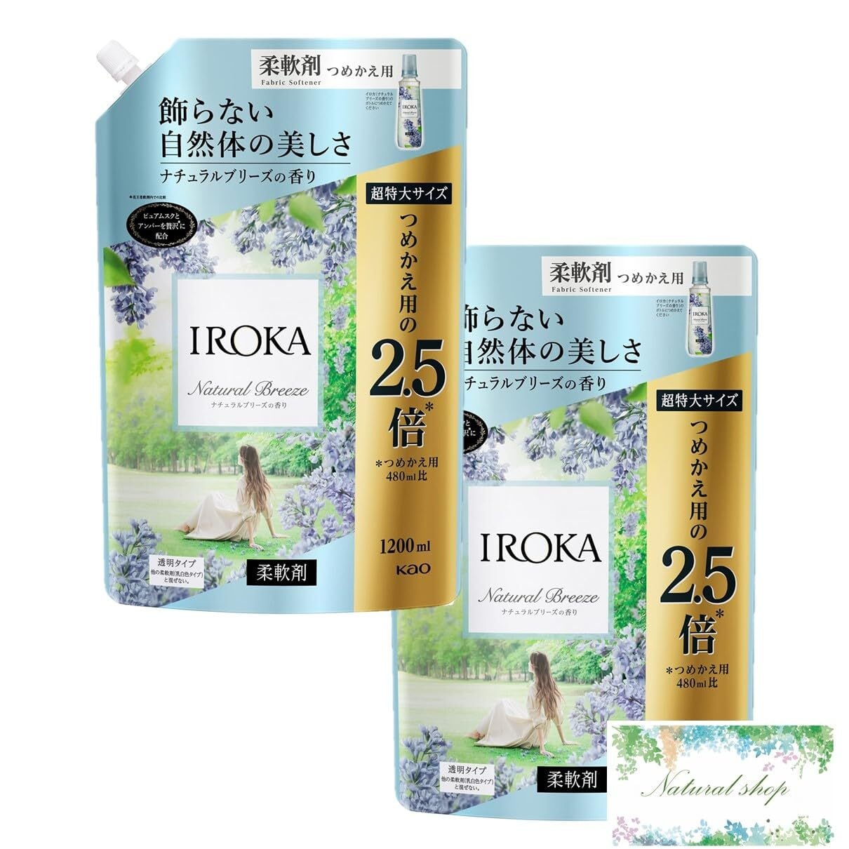 【 まとめ買い 2袋 】フレア フレグランス IROKA 柔軟剤 ナチュラルブリーズ 詰替 超特大サイズ 1200ml × 2袋 ポケットティッシュ付き