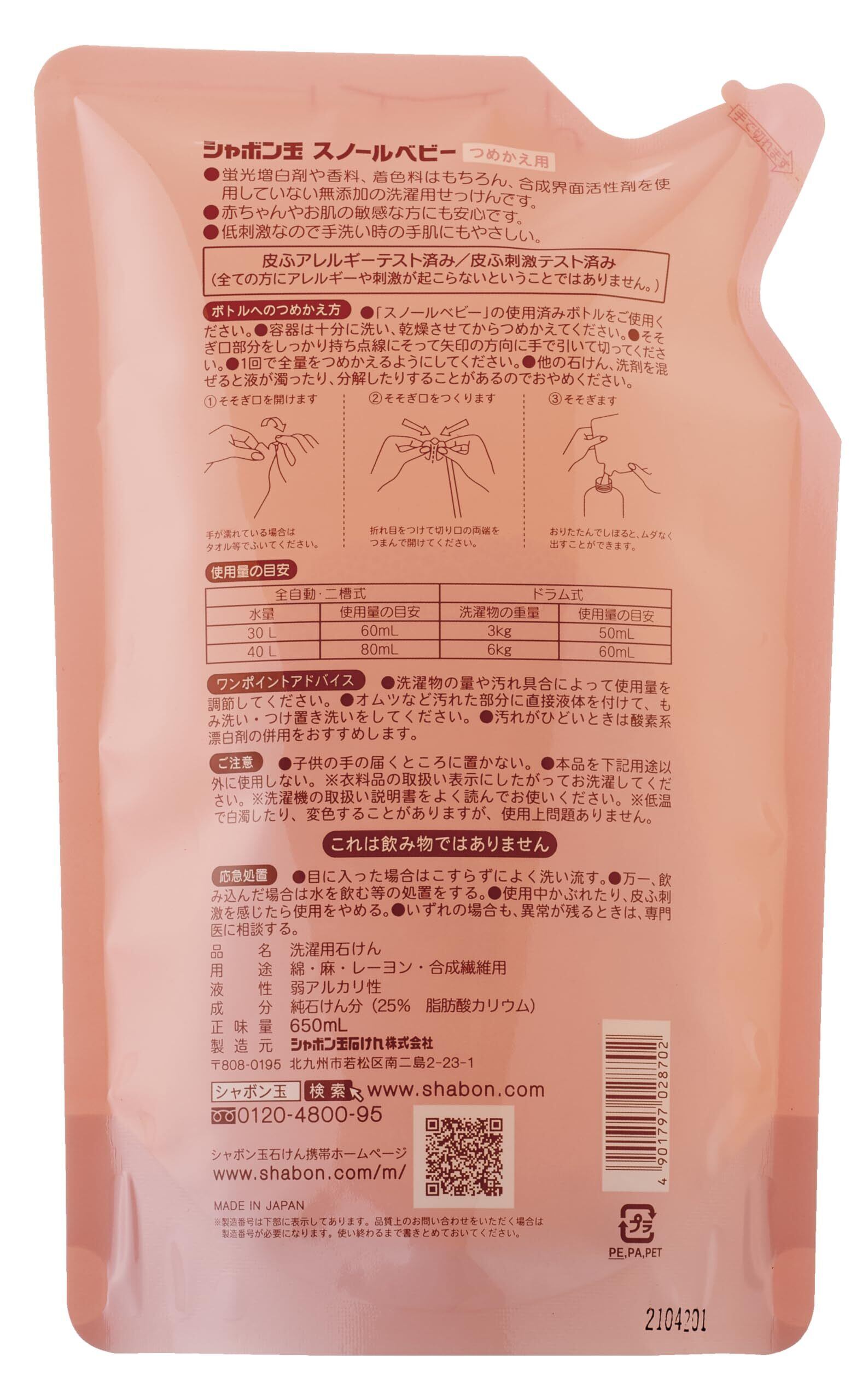 シャボン玉石けん シャボン玉 衣料用液体洗剤 スノールベビー つめかえ用 650ml
