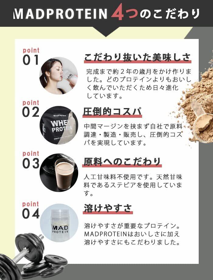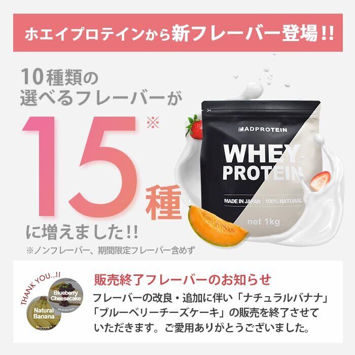 MAD PROTEIN(マッドプロテイン) ホエイプロテインWPC 人工甘味料不使用 国内製造 フレーバー 15種類 (ナチュラルストロベリー, 1㎏)
