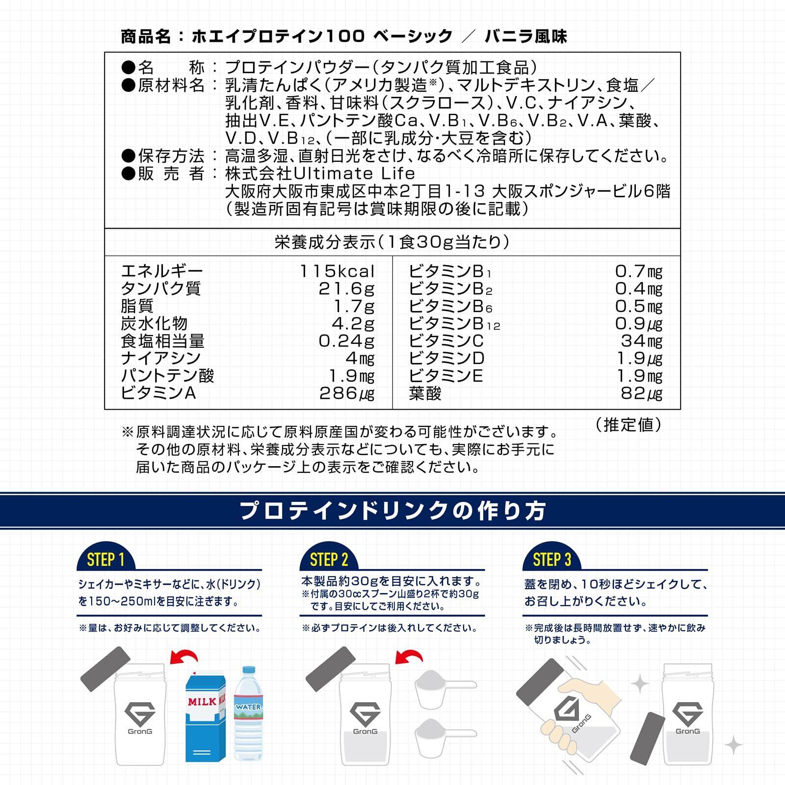 グロング プロテイン 3kg ホエイプロテイン ベーシック バニラ風味 ビタミン11種配合 国内製造 GronG